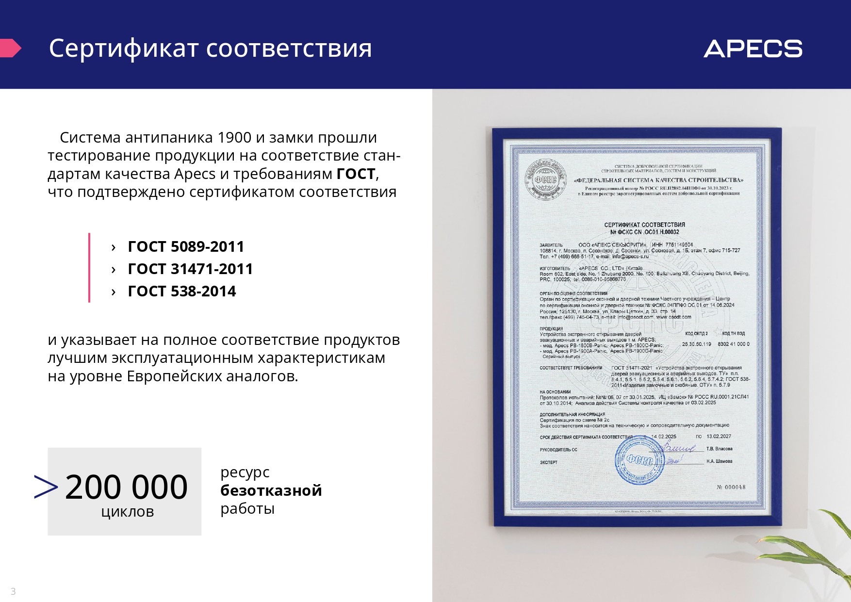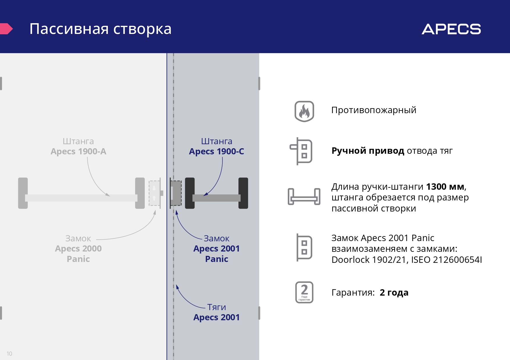 Установка совместно с замком Apecs 2000-Panic и: