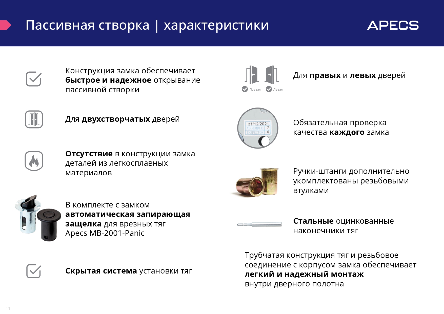 Продукция требует профессиональной установки и рекомендована для производителей и установщиков эвакуационных дверей.