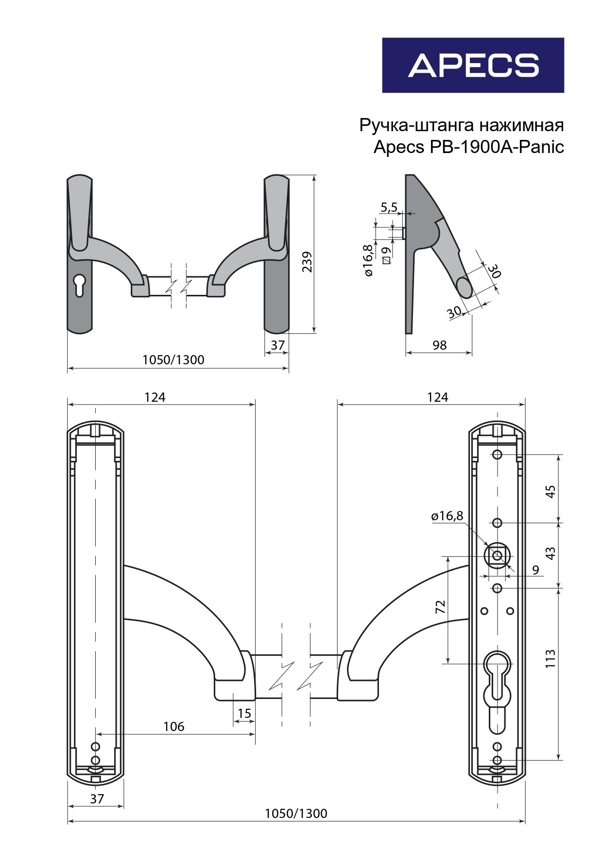 -ручкой на планке Apecs HP-72.1303-INOX/304-BLM (for 1700A,1900A )для моделей 1900A, 1700A