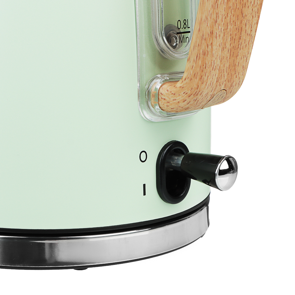 Электрический чайник LEBEN со скрытым нагревательным элементом объемом 1,7 л с мощностью 2200 Вт – это высококачественный и надежный бытовой прибор, рассчитанный на длительное использование. Имеет оригинальный дизайн в нежном мятном цвете с ручкой и элементами крышки «под дерево». Дополнит интерьер кухни, создавая интересный акцент. Корпус выполнен из нержавеющей стали, защищен от коррозии и протечки и оснащен шкалой уровня воды. Имеет функцию автоотключения при закипании и отсутствии воды и световой индикатор работы. Широкая нескользящая ручка удобно ложится в руку, а правильная форма носика исключает проливание воды мимо чашки.