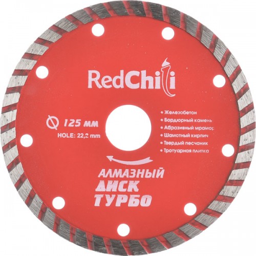 Бренд - Redchili Высота режущего слоя - 10 мм Диаметр - 125мм Назначение - Камень, армированный бетон