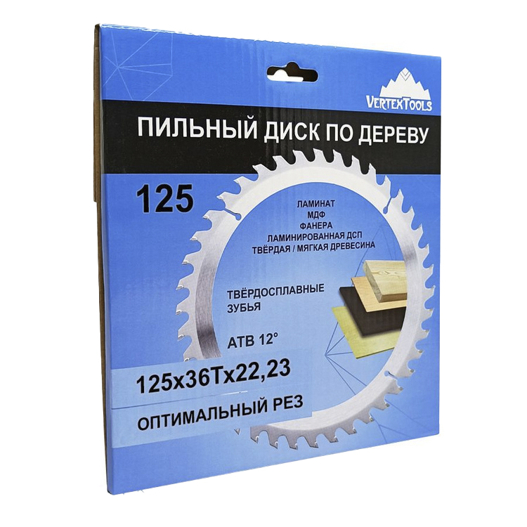 Диск пильный VertexTools по дереву, диаметр 115 мм, посадочный диаметр 22,2/20 мм, 36 зубов с победитовыми напайками.