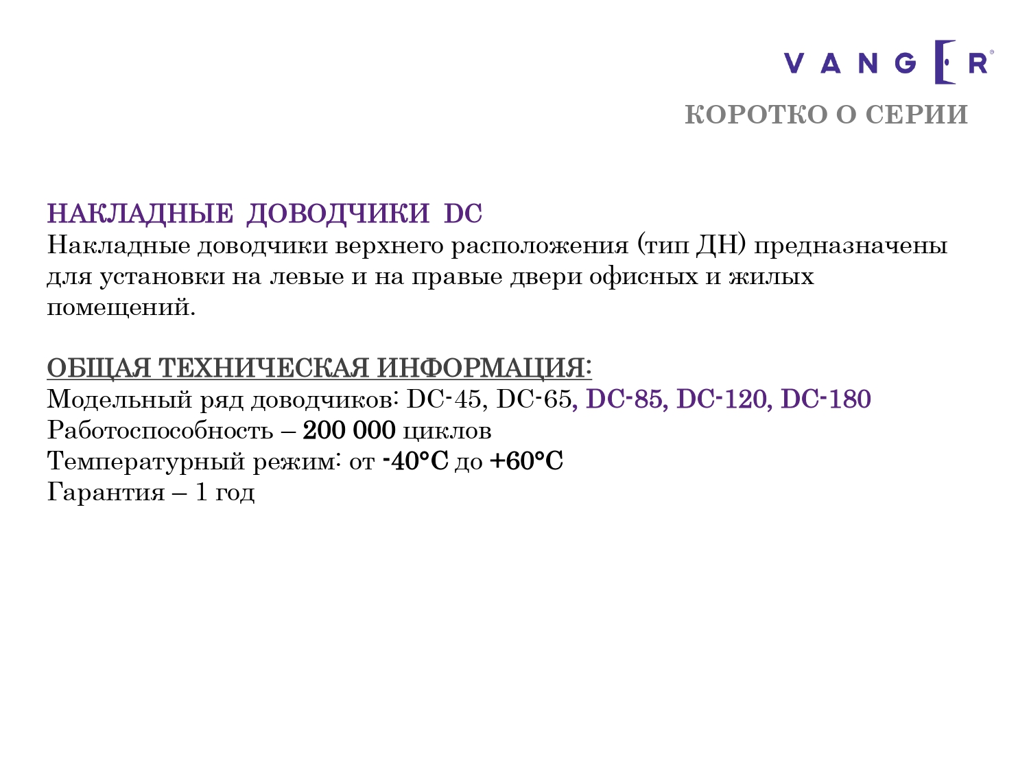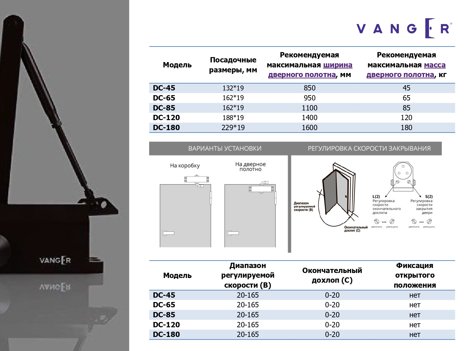Доводчик VANGER DC-120-BL (-40/+60 до 120кг) ЧЕРНЫЙ (10)