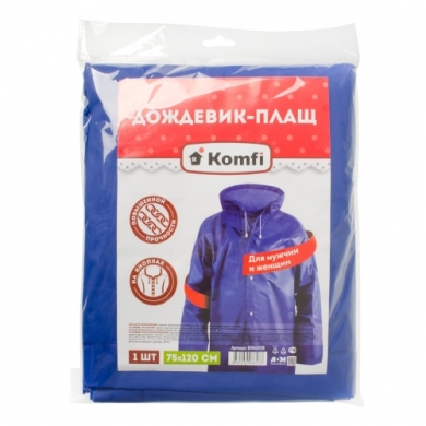 Дождевик-плащ 120х75см "EVA" на кнопках СИНИЙ 110мкм "Komfi" (50)
