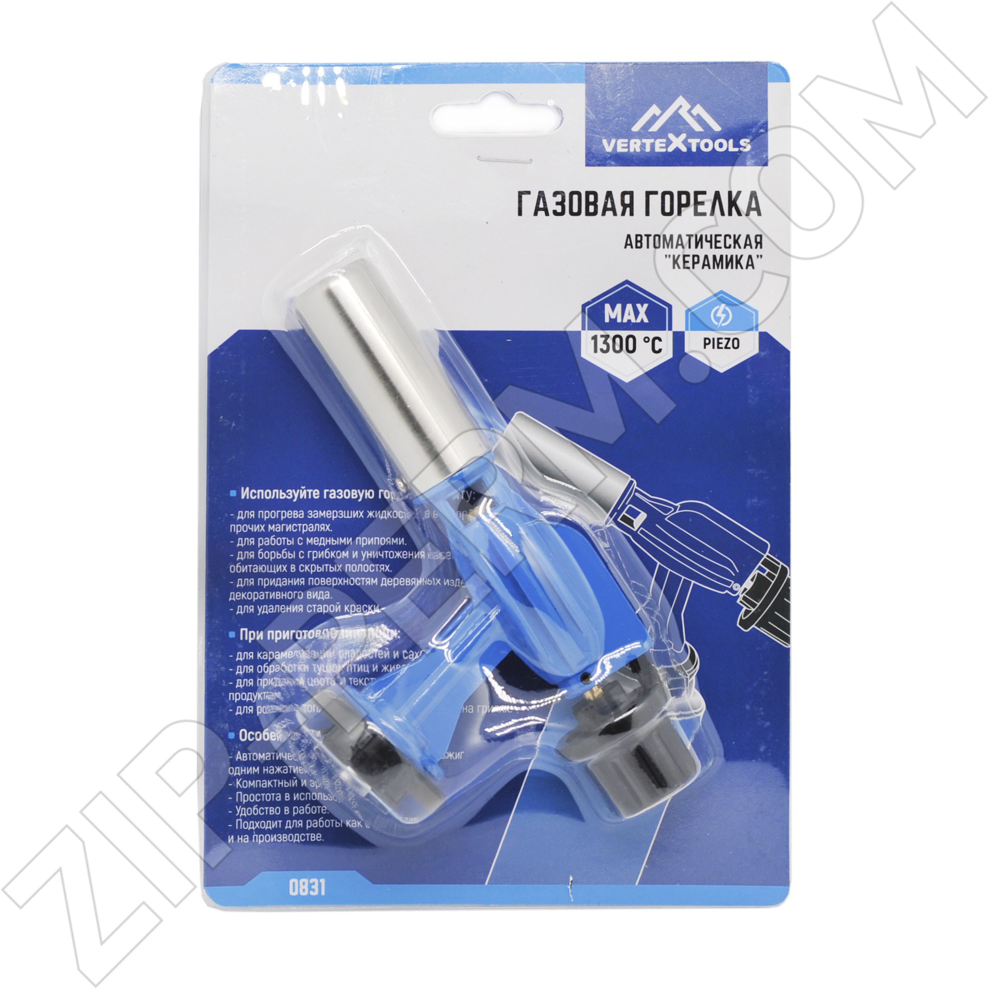 Газовая горелка с пьезоподжигом vertextools керамика 0831 применяется для розжига костра, разогрева трубопровода, нагрева предметов и проведения различных ремонтных работ.