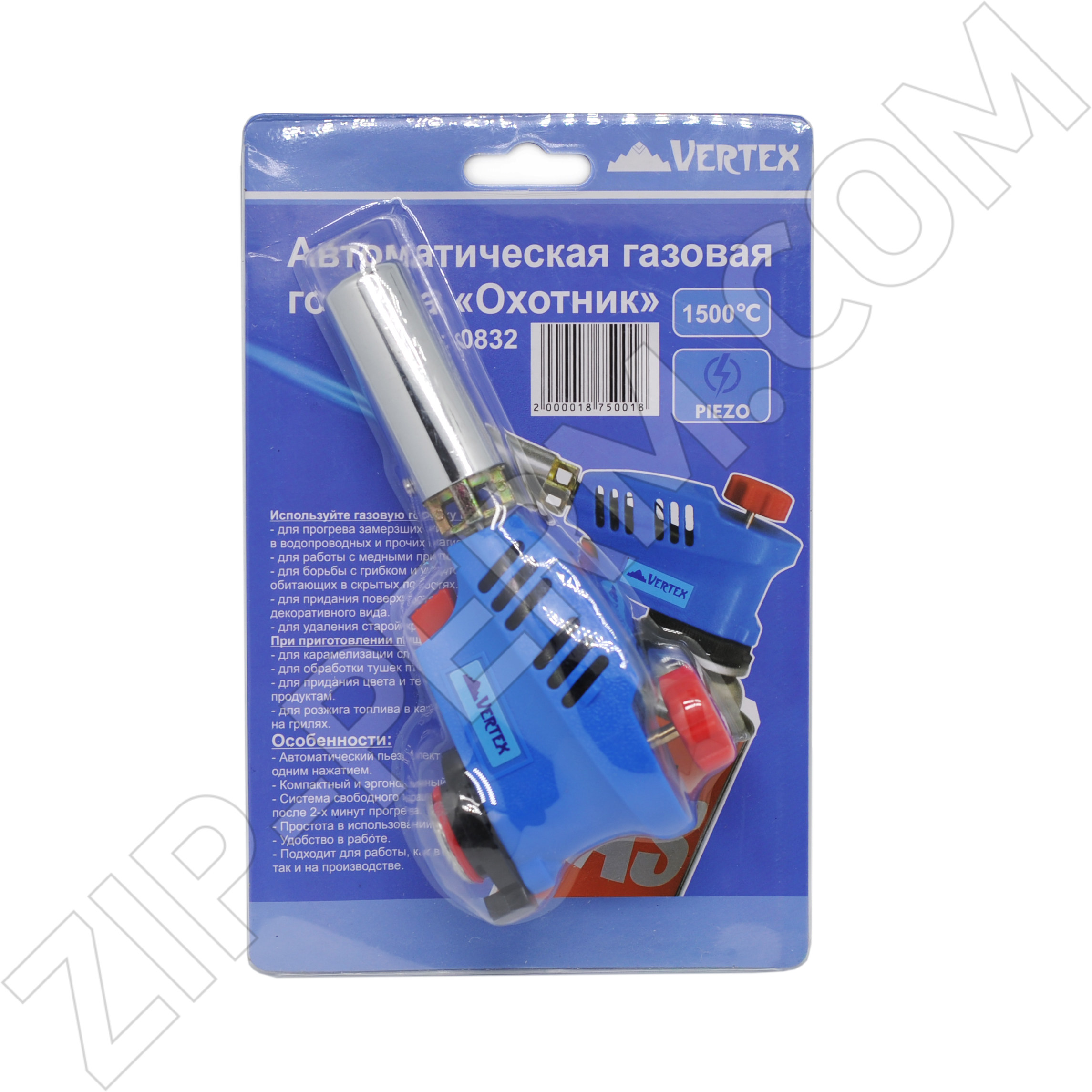 Горелка газовая с пьезо "VertexTools ОХОТНИК" (цанга) (1/10/60)