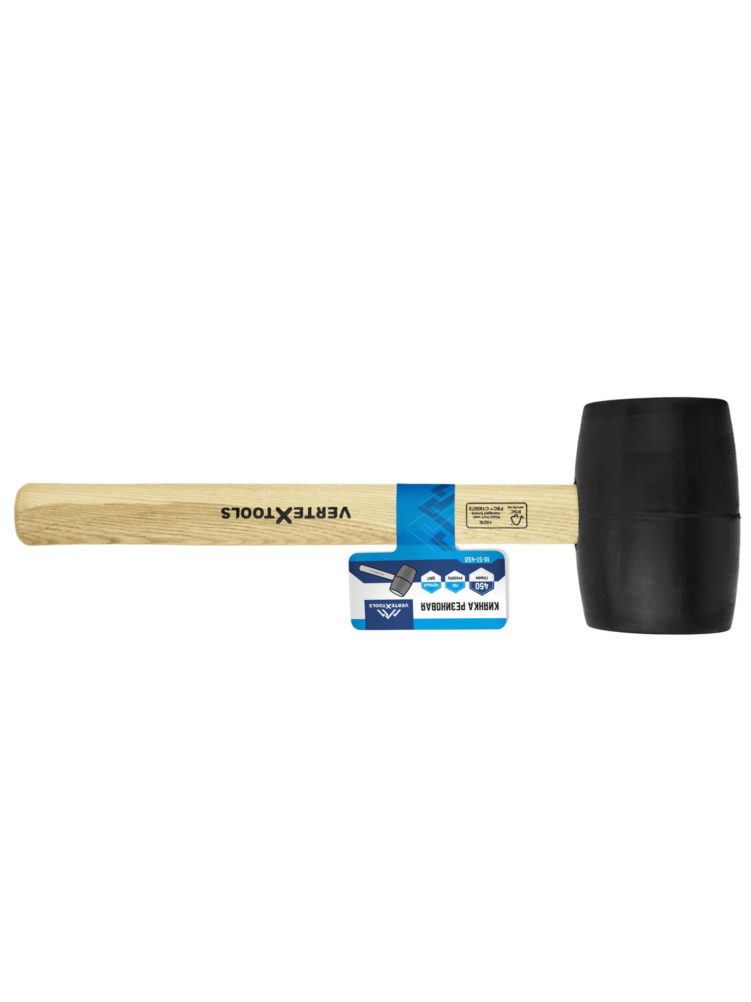 Киянка резиновая с деревянной ручкой черная 450гр FSC "VERTEXTOOLS" (1/6)