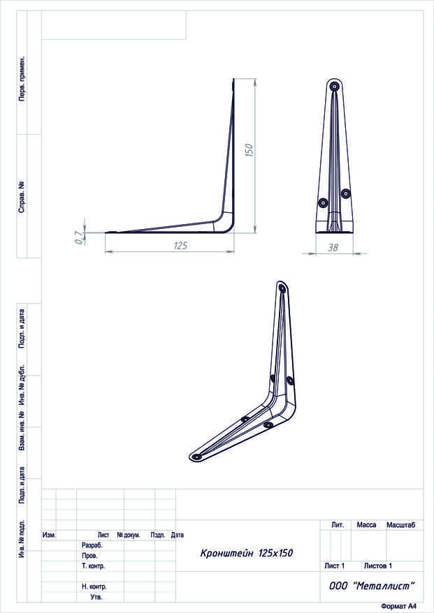 Кронштейн 125*150 пол.белый г.Кунгур (100)