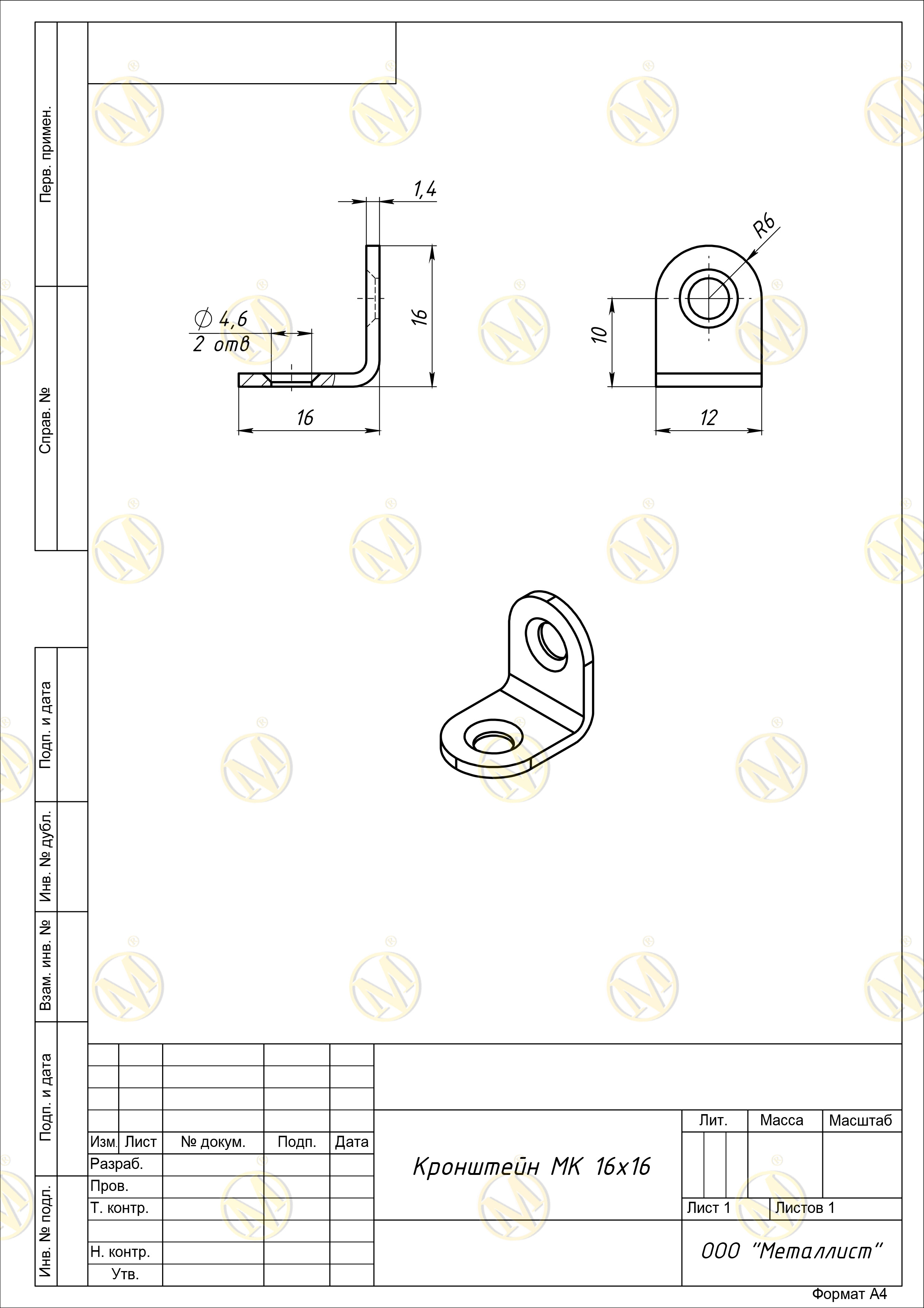 Кронштейн МК 16*16 цинк г.Кунгур (1000)