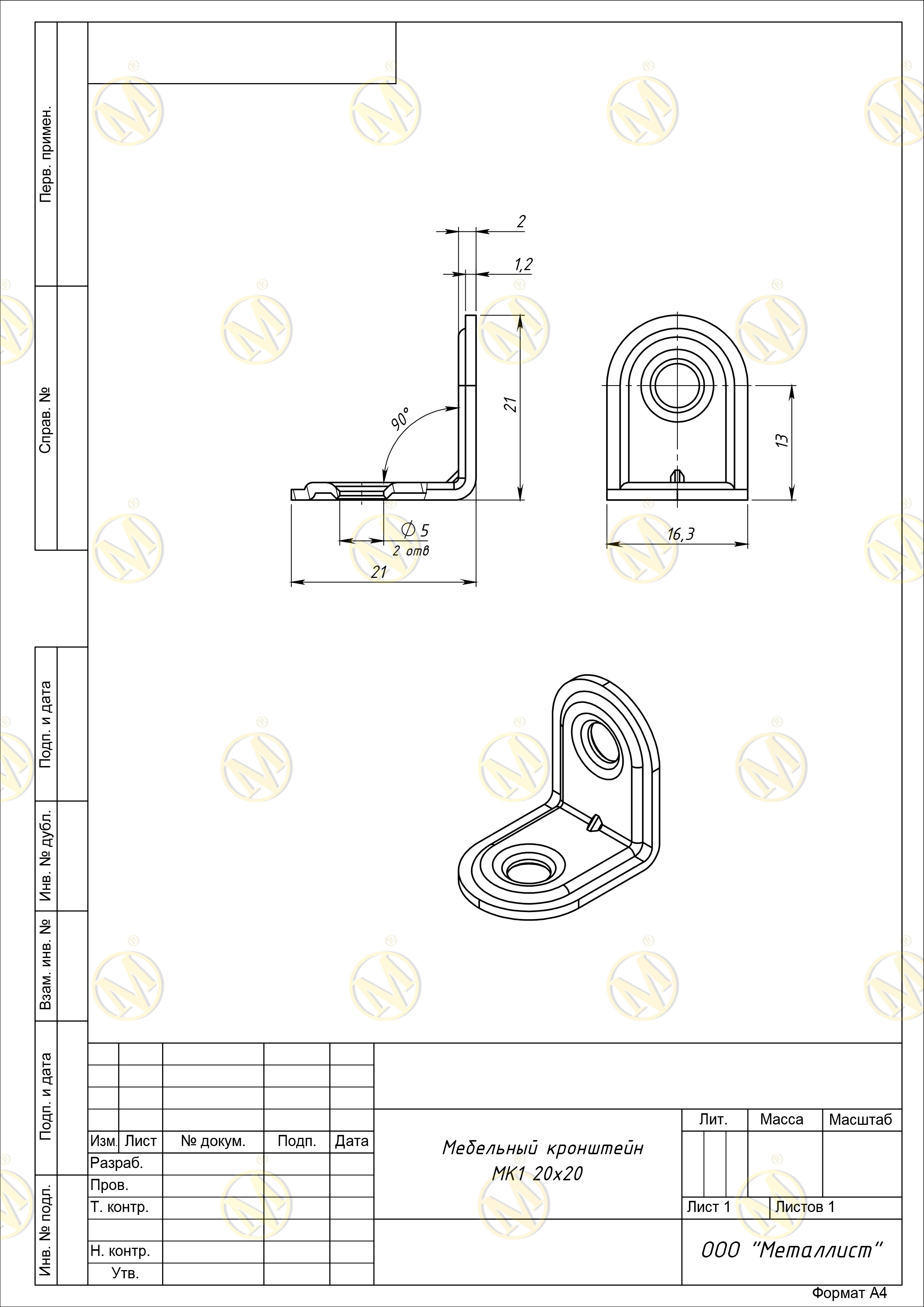 Кронштейн МК-1 20*20 цинк г.Кунгур (1000)