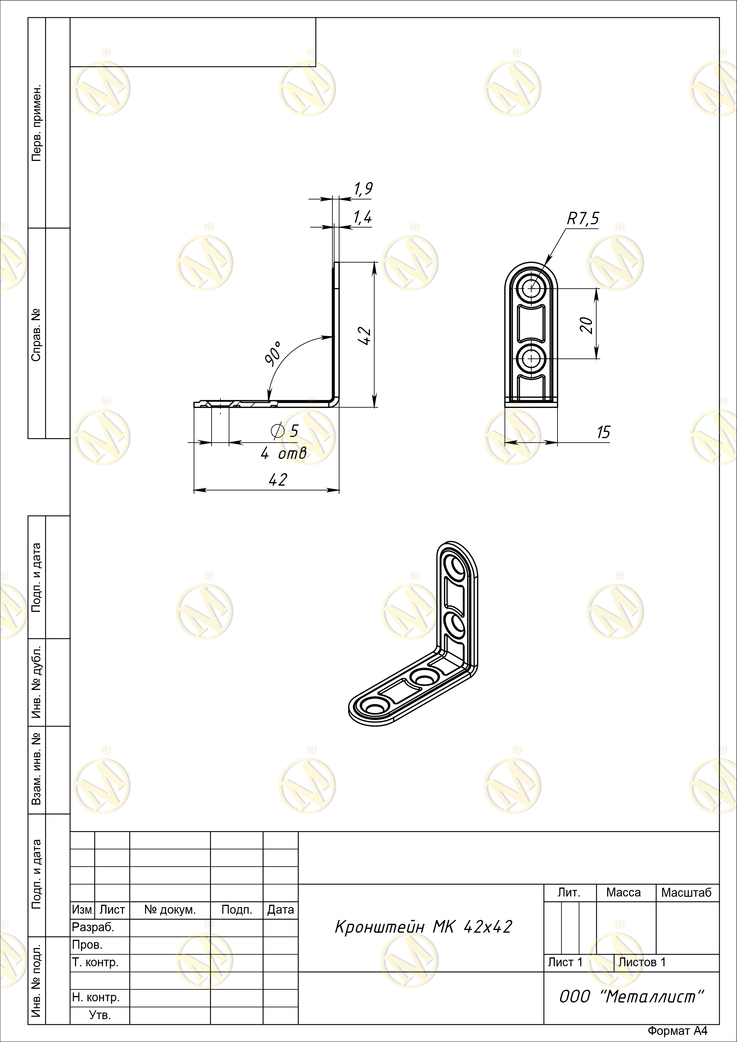 Кронштейн МК 42*42 цинк г.Кунгур (400)