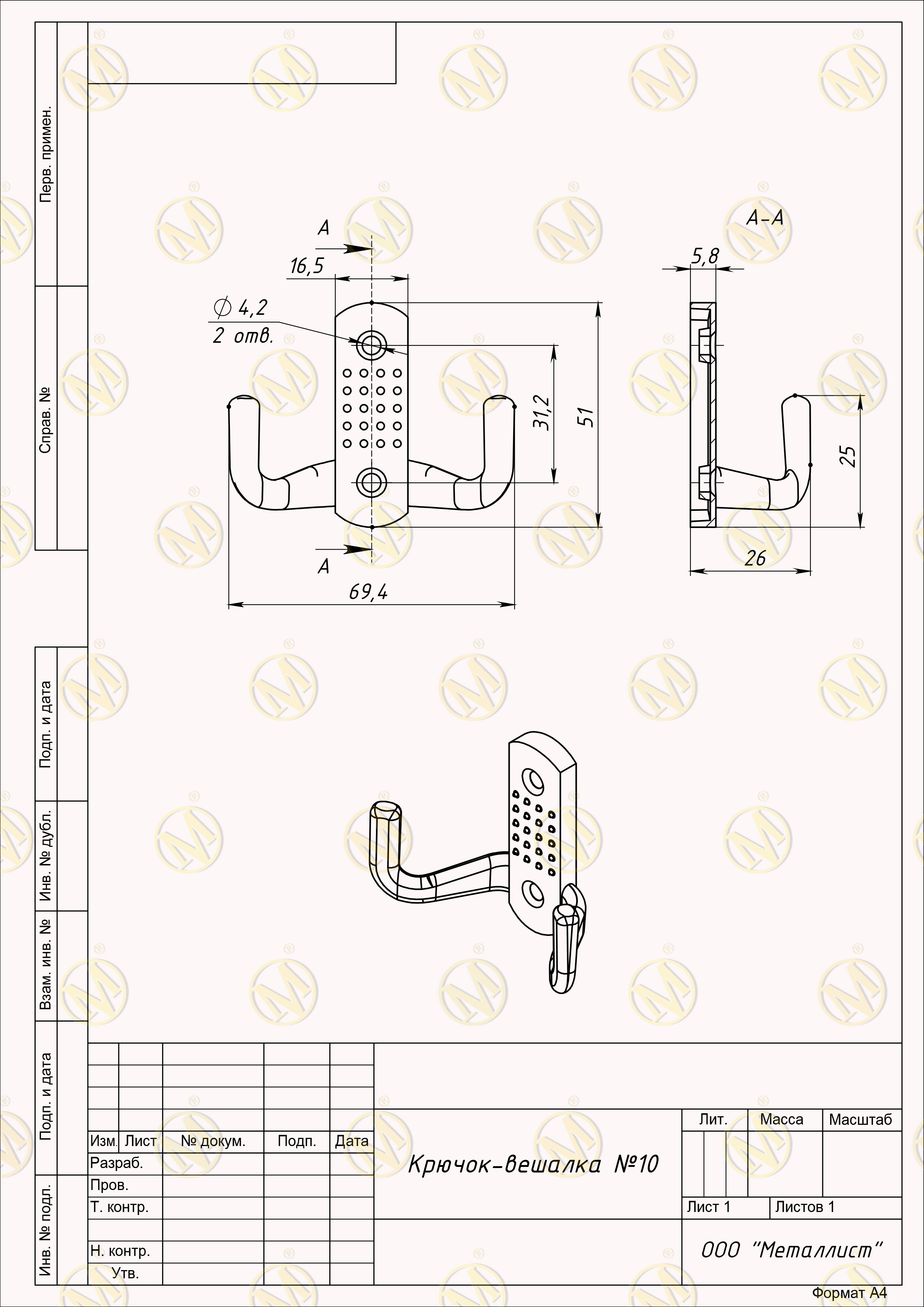 Крючок- вешалка №10 пол.бронза г.Кунгур (100)