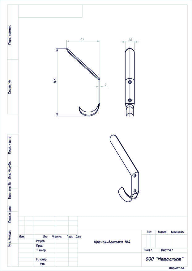 Крючок- вешалка № 4 пол.черный г.Кунгур (50)