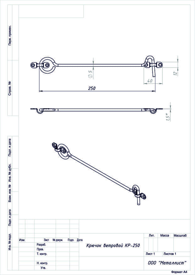 Крючок ветровой КР-250 цинк г.Кунгур (100)