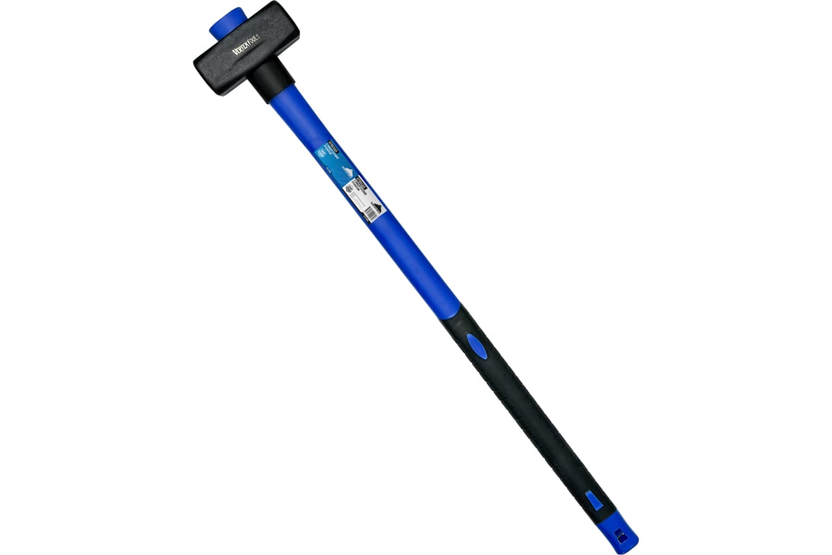 Кувалда представляет собой тяжелый ударный инструмент, предназначенный для нанесения сильных ударов при обработке металла, на демонтаже и монтаже конструкций. Кувалда с длинной фибергласовой рукояткой 90 см оборудована обратным клином для защиты от вылета бойка. Фиберглас представляет собой композит полимера и стекловолокна - это прочный и гибкий материал, который выдерживает большие механические нагрузки и делает рукоятку надежной и удобной. Наличие резинового кольца на рукояти под бойком защищает ее от случайных ударов. Лакированный стальной боек устойчив к ржавчине и деформации.