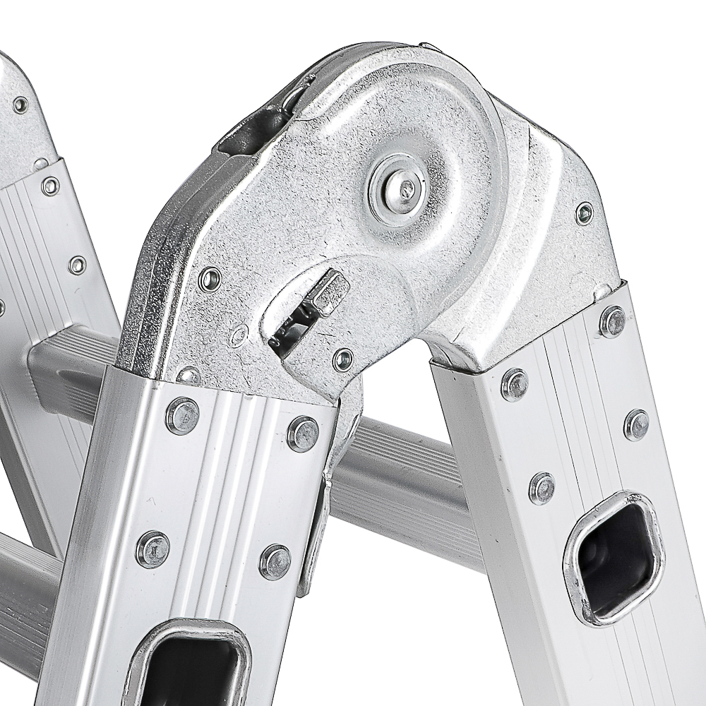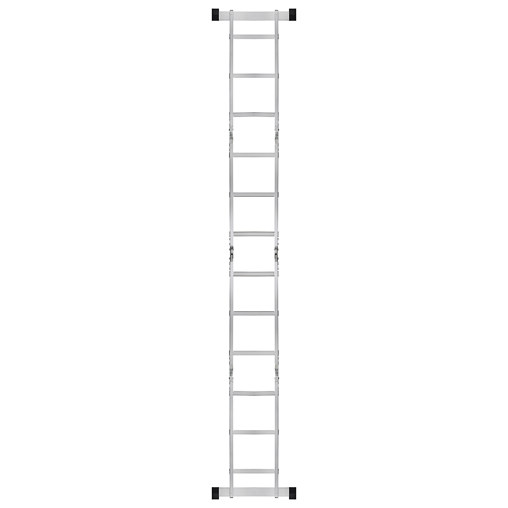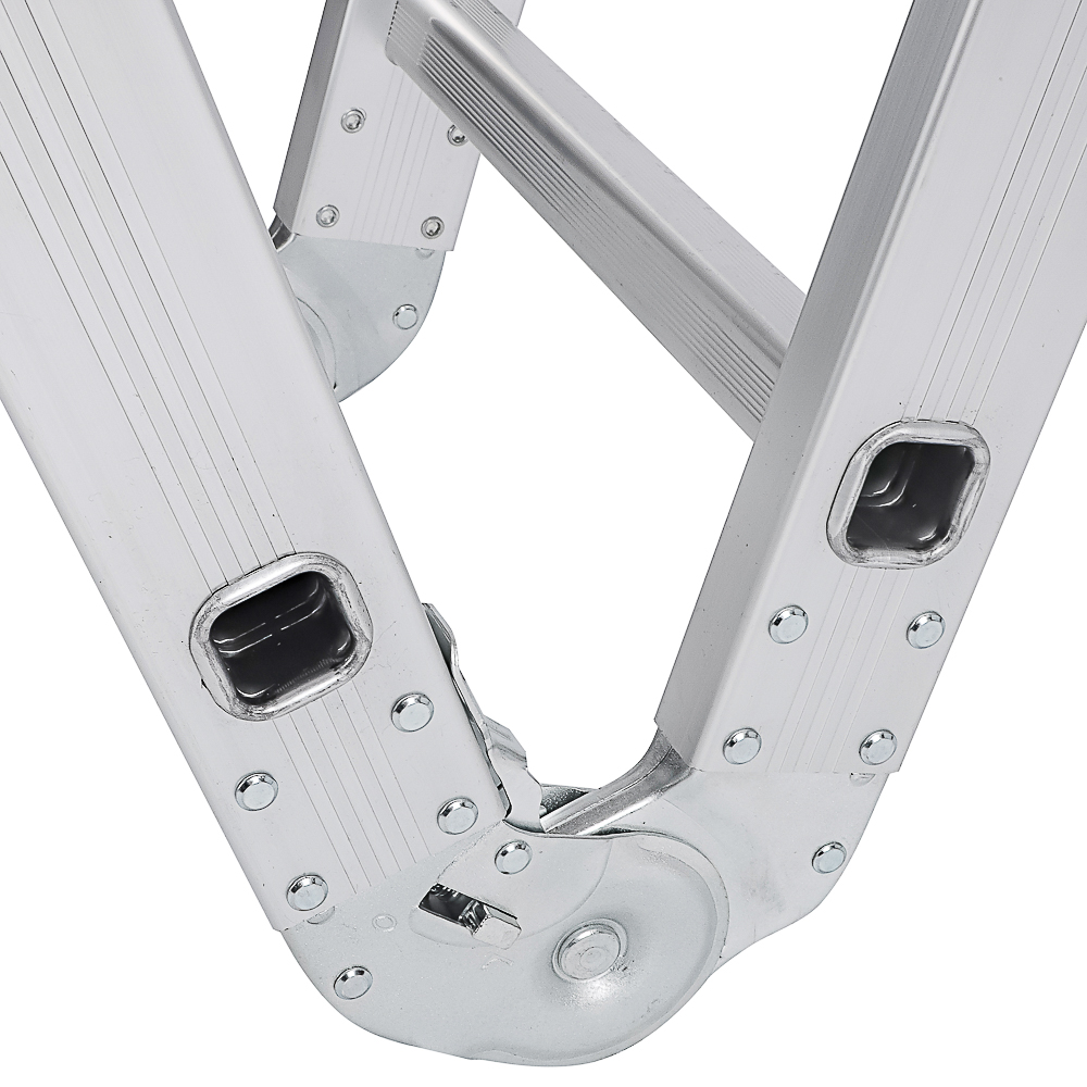 Лестница-трансформер "ЕРМАК" – это многофункциональное и надежное решение для выполнения различных задач на высоте. Изготовленная из прочного алюминия с толщиной профиля 1,2 мм, лестница сочетает в себе легкость, долговечность и устойчивость к коррозии, что делает ее идеальной для использования в быту, на даче или на строительной площадке. Лестница состоит из 4 секций, каждая из которых включает 3 ступени, что позволяет трансформировать ее в различные конфигурации: приставную лестницу, стремянку, платформу или двухстороннюю лестницу.