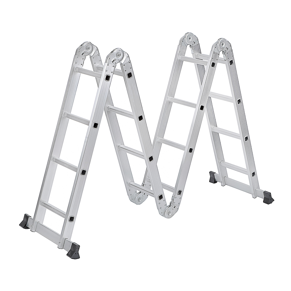 Лестница-трансформер "ЕРМАК" – это многофункциональное и надежное решение для выполнения различных задач на высоте. Изготовленная из прочного алюминия с толщиной профиля 1,2 мм, лестница сочетает в себе легкость, долговечность и устойчивость к коррозии, что делает ее идеальной для использования в быту, на даче или на строительной площадке. Лестница состоит из 4 секций, каждая из которых включает 4 ступени, что позволяет трансформировать ее в различные конфигурации: приставную лестницу, стремянку, платформу или двухстороннюю лестницу.