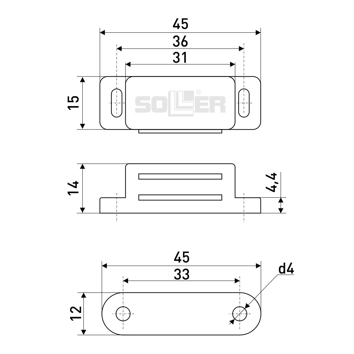 Магнит мебельный белый L-45мм H-14мм "SOLLER" (50)