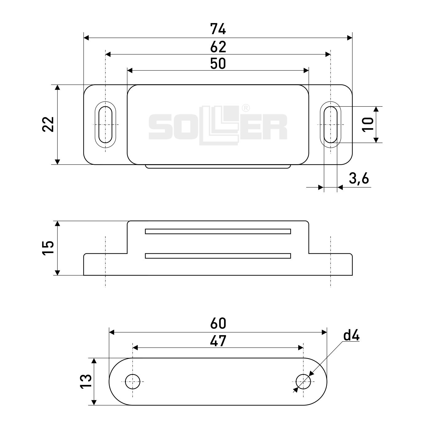 Магнит мебельный белый L-74мм H-15мм "SOLLER" (40)