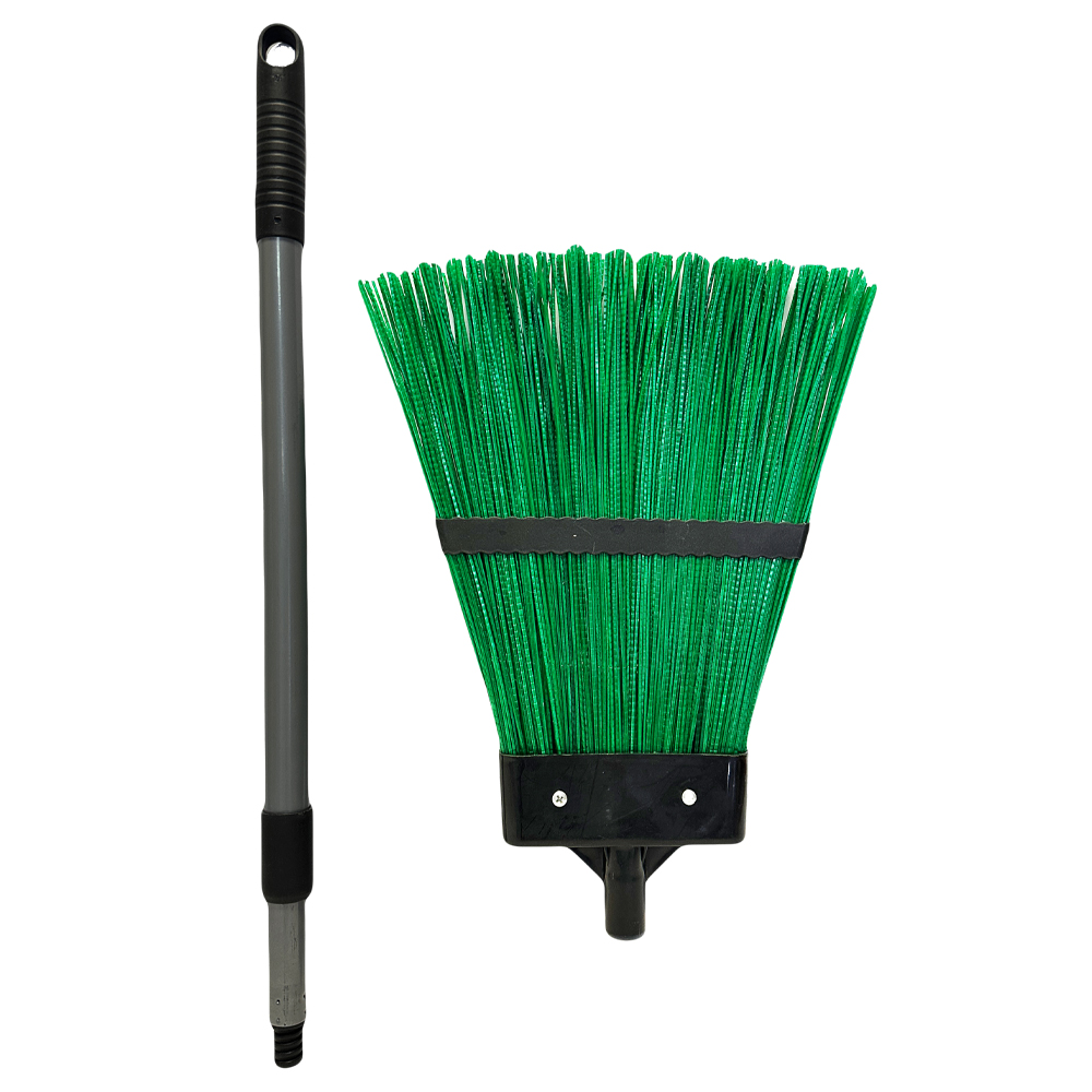 Метла садовая с стальной телескопической ручкой 92 см и щеткой 30 см. Инвентарь для повседневной уборки улиц, дворов, настилов, территории садовых и дачных участков, тротуаров и других открытых площадок от пыли, песка, грязи, листьев, мусора. Колодка метлы производится из полипропилена – легкий и прочный материал. Ворс гибкий, упругий, в колодке плотно и надежно посажен, изготовлен из устойчивого к истиранию современного синтетического материала. Метла пластиковая отличается надежной и долговечной конструкцией, износоустойчивостью, большим комфортом при уборке, за счет удобной прочной рукоятки и распушенным ворсом, малым весом, что позволяет значительно увеличить производительность труда при уборке территории. Черенок телескопический крепкий, стальной, на окончании имеет петлю-подвес для удобного хранения.