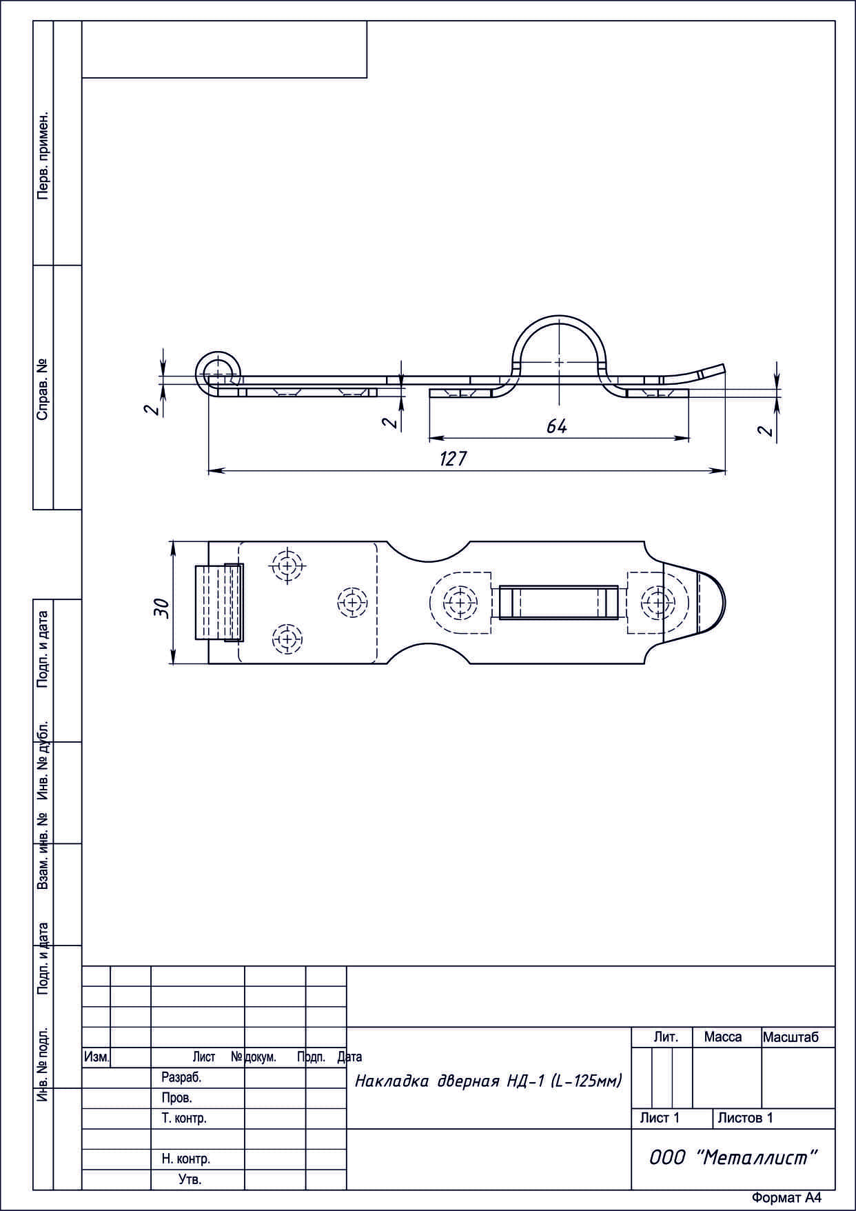 Накладка дверная НД-1 цинк L-125мм г.Кунгур (100)