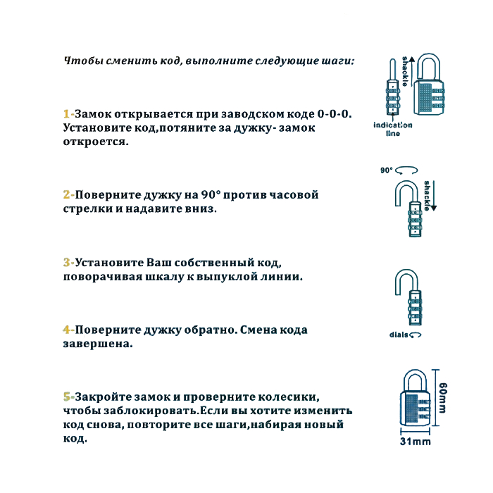 Описание: Габариты 60*31*12,5, дужка 4,5 мм.