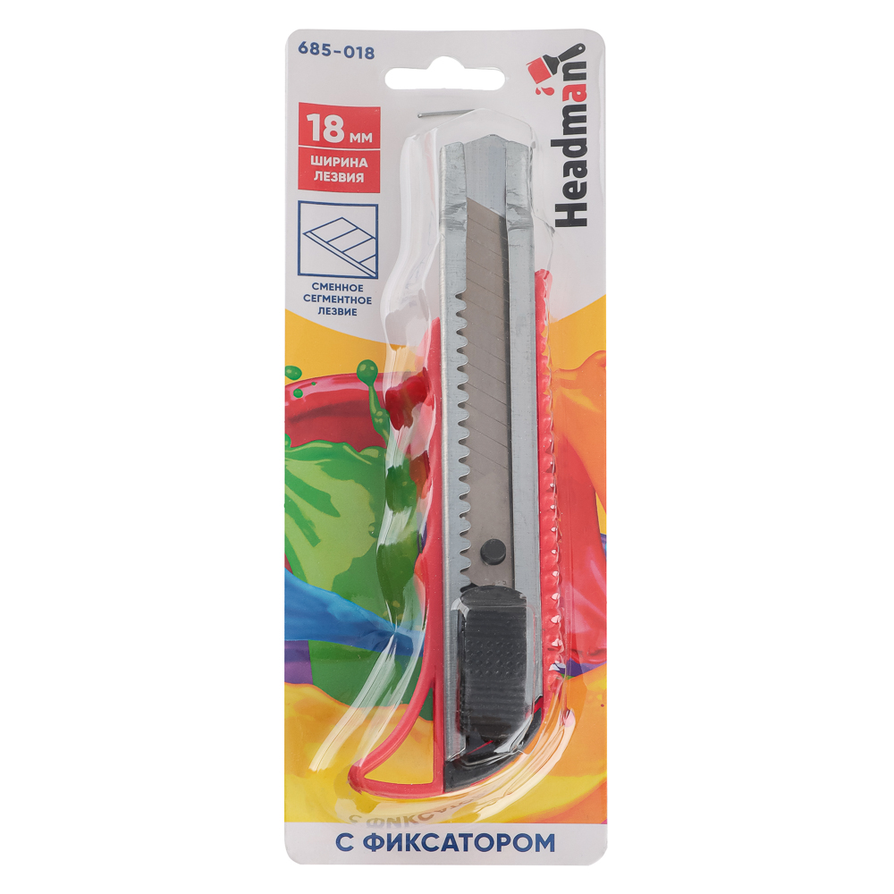 Сегментный нож HEADMAN с фиксатором и сменным лезвием шириной 18 мм и толщиной 0,4 мм имеет широкий спектр применений в быту, ремонте, строительстве и во время проведения монтажных работ.