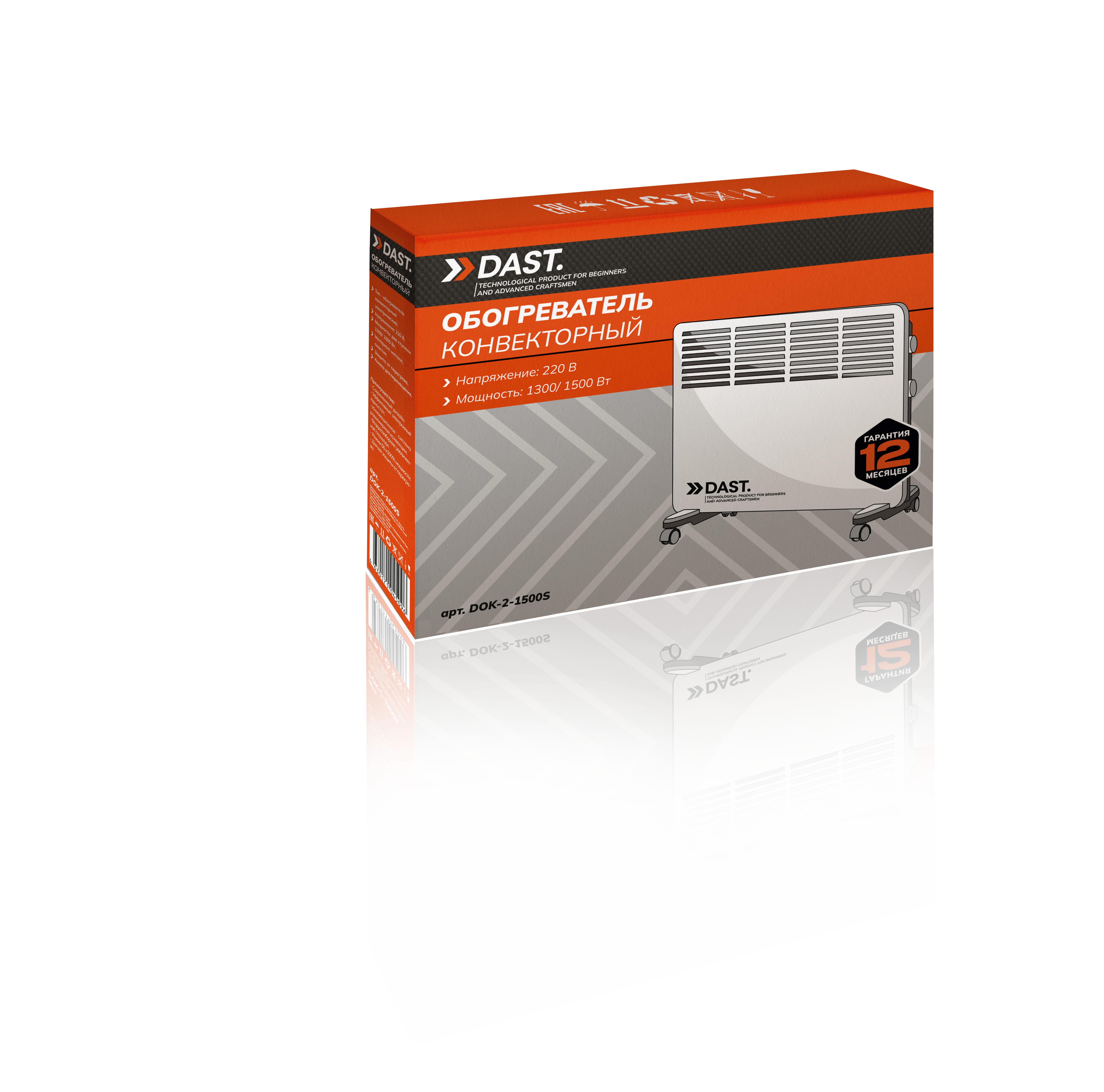Конвекторный обогреватель DAST для дома — это мощное и удобное решение для обогрева помещений до 25 м². Мощность 1500 Вт и три режима работы (750,1500 Вт) позволяют гибко настроить устройство под нужды помещения. В комплекте идут ножки, крепежные болты и монтажный комплект для удобной установки, а также руководство пользователя. Устройство оснащено защитой от перегрева, ручками для переноски и механическим управлением. Работает от сети 220-240 В/50 Гц, степень защиты IPX0, класс электрозащиты I. Длина шнура — 1,2 м. Корпус выполнен из прочного металла и пластика.