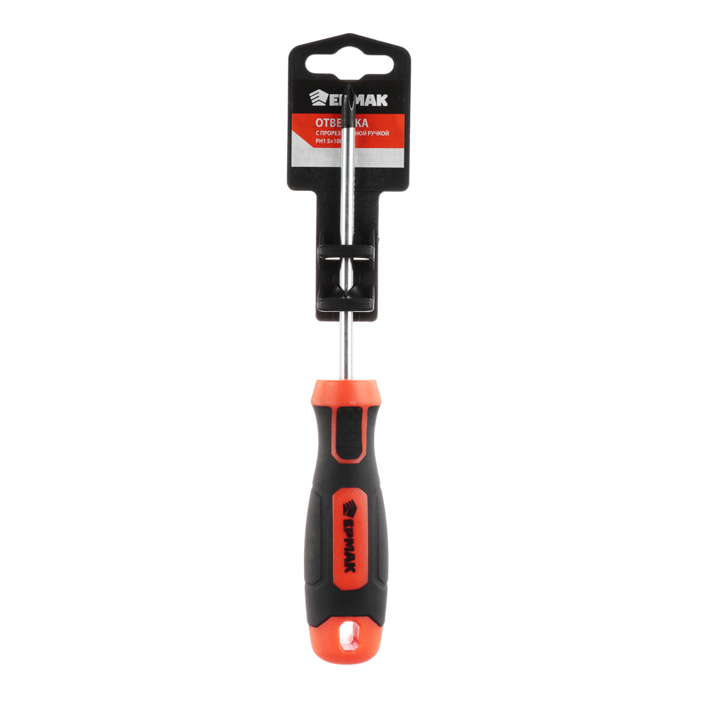 Отвертка ЕРМАК с прорезиненной ручкой PH1 5х100 мм – это надежный инструмент для слесарных и монтажных работ. Применяется для работы с резьбовыми крепежами, имеющими шлицевые головки с повышенным крутящим моментом. Отлично справляется с застарелыми и прикипевшими резьбовыми соединениями. Отвертка имеет прорезиненные вставки на рукояти, что обеспечивает надежный хват и исключает выскальзывание инструмента из рук в процессе работы. Стержень и наконечник из углеродистой стали с защитным антикоррозийным покрытием обладают высокой стойкостью к деформации.