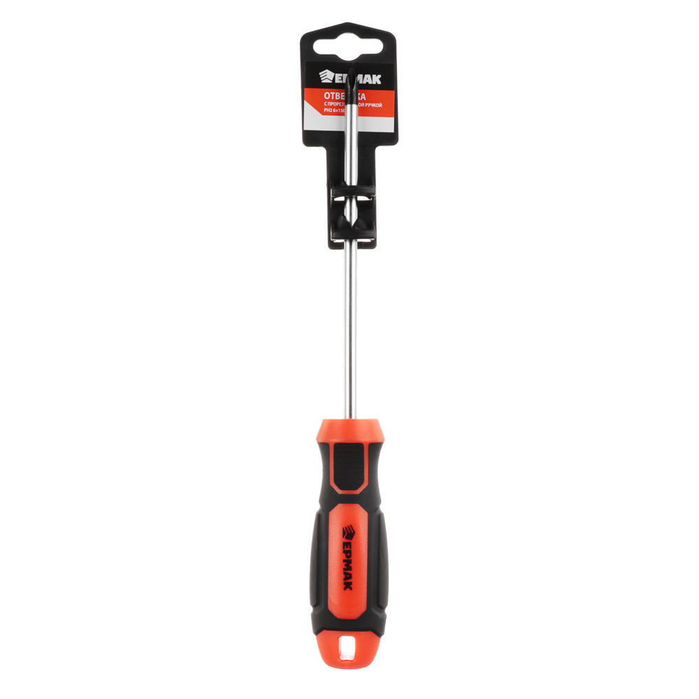 Отвертка ЕРМАК с прорезиненной ручкой PH2 6х150 мм – это надежный инструмент для слесарных и монтажных работ. Применяется для работы с резьбовыми крепежами, имеющими шлицевые головки с повышенным крутящим моментом. Отлично справляется с застарелыми и прикипевшими резьбовыми соединениями. Отвертка имеет прорезиненные вставки на рукояти, что обеспечивает надежный хват и исключает выскальзывание инструмента из рук в процессе работы. Стержень и наконечник из углеродистой стали с защитным антикоррозийным покрытием обладают высокой стойкостью к деформации.