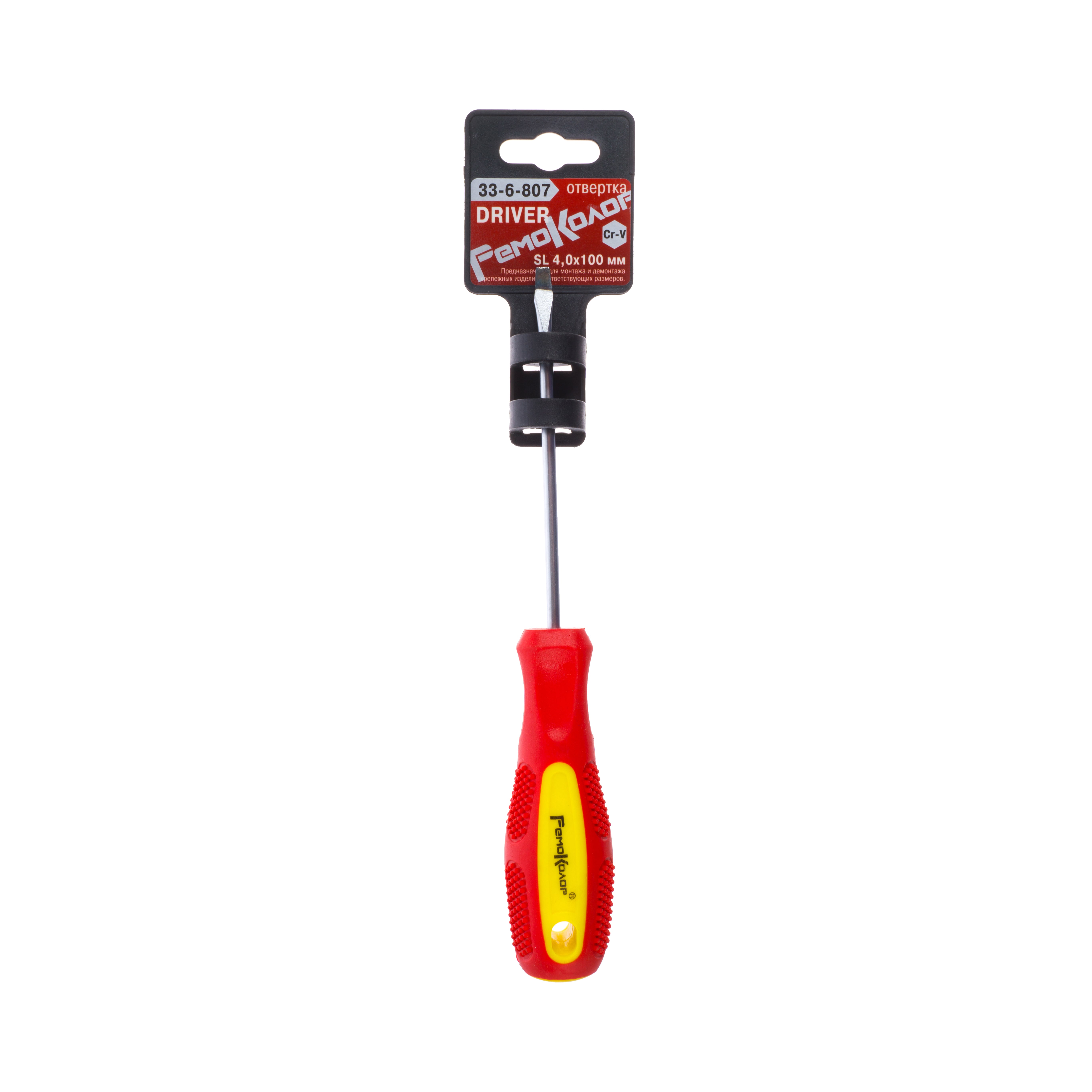 Отвертка шлицевая "Ремоколор DRIVER" обрез.ручка SL4 х 100мм (12)