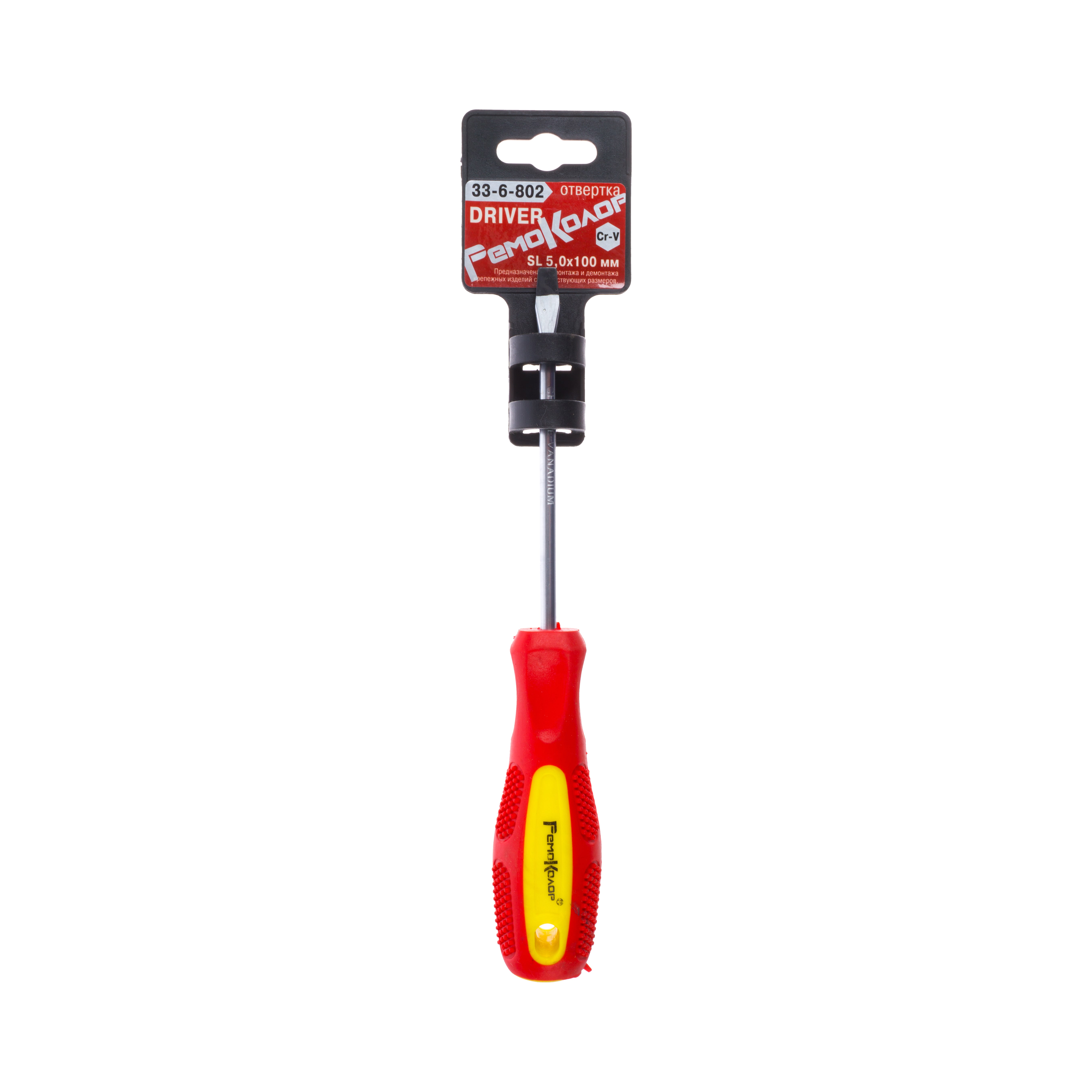 --Отвертка шлицевая "Ремоколор DRIVER" обрез.ручка SL5 х 100мм (12)Гвоздодеры, Зубила, Ломы.Зажимные устройства и предметы.Комплектующие для дрели и перфоратора.Молотки, Кувалды, Киянки.Наборы инструмента.Напильники и комплектующие.Отвертки.Пилы, Ножовки, Полотна, Стусла.Резьбонарезной инструмент.Рубанки.Стамески и наборыТопоры,колуны Шарнирно-гупцевый инструмент.Шило.