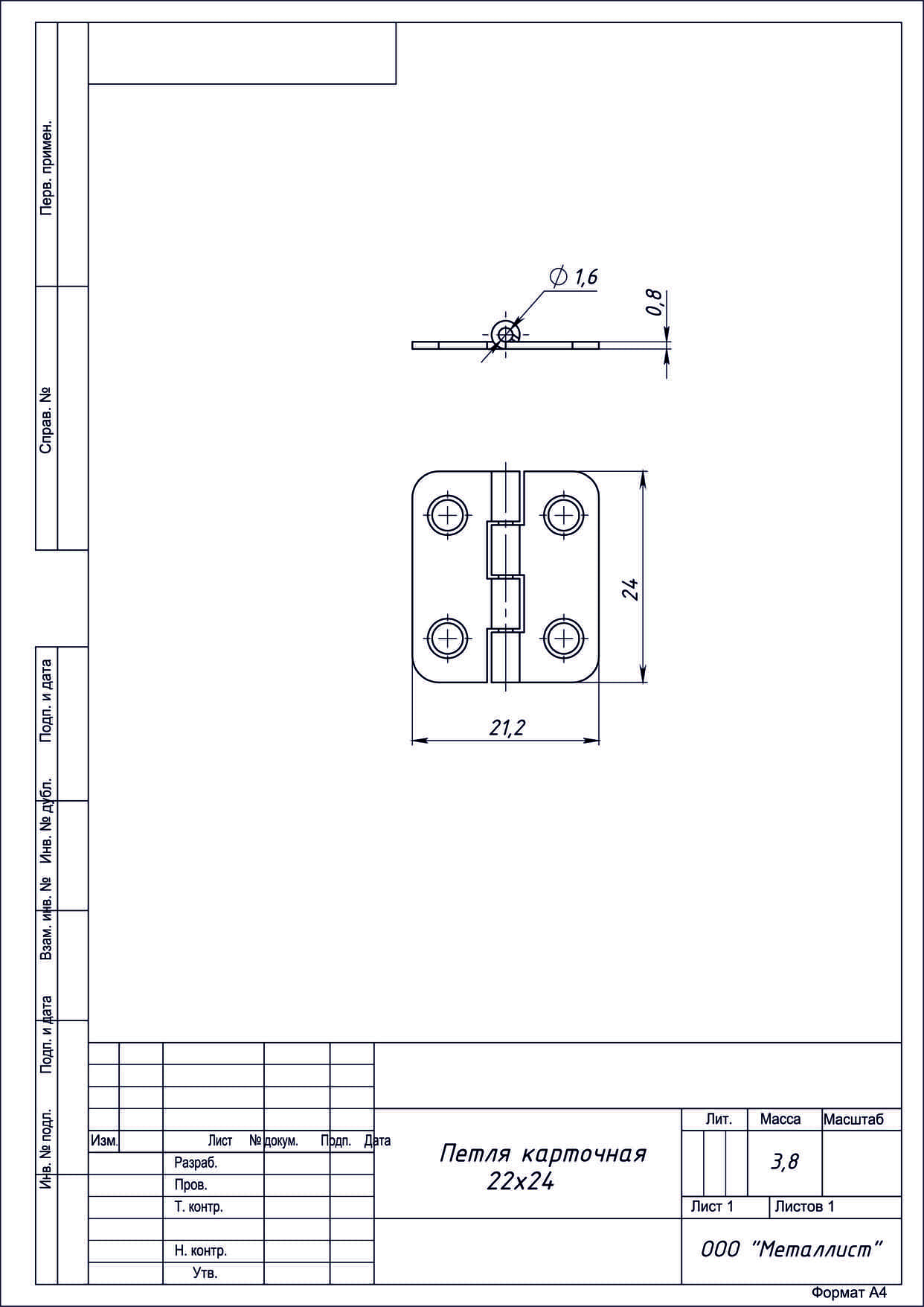 Петля карточная 22*24 цинк г.Кунгур (300)