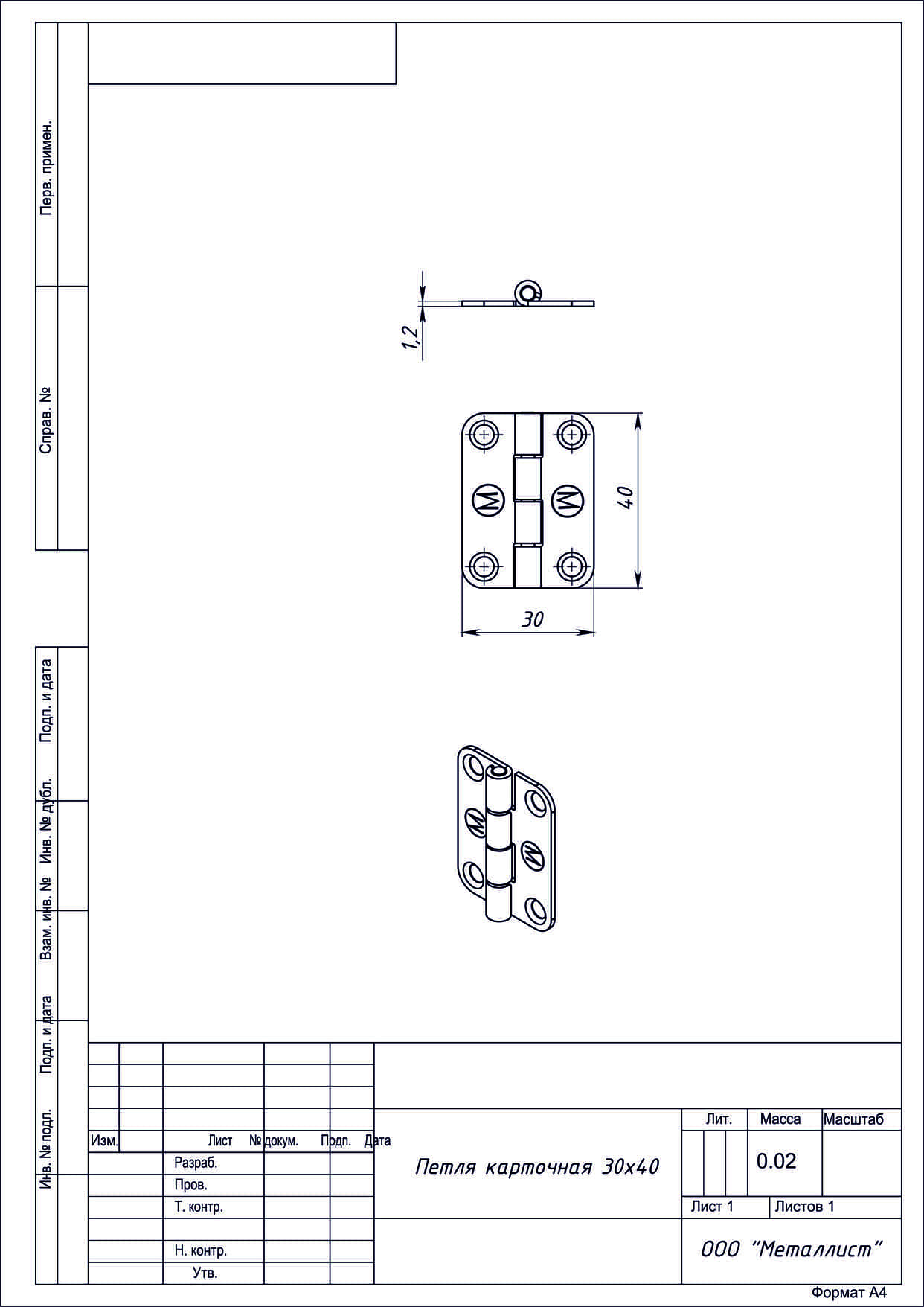 Петля карточная 30*40 цинк г.Кунгур (300)