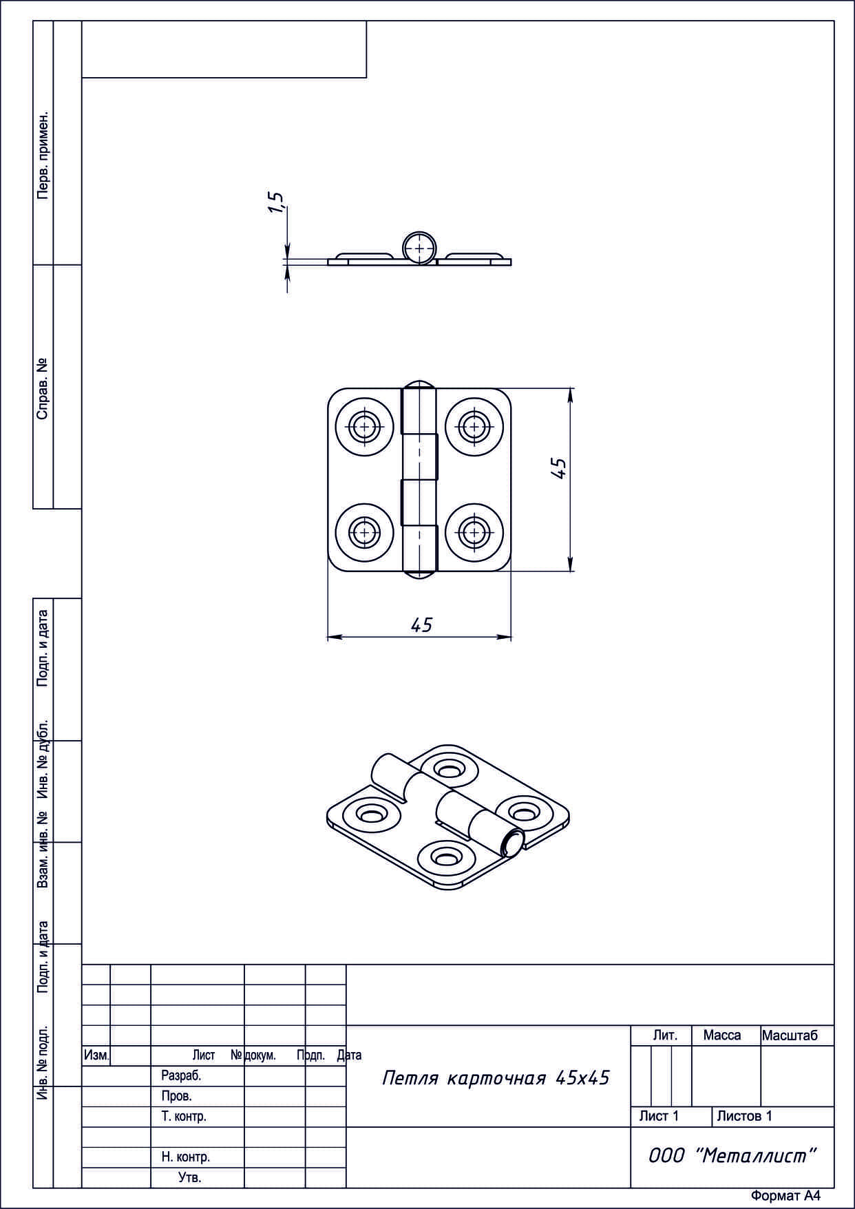 Петля карточная 45*45 усиленная цинк г.Кунгур (200)