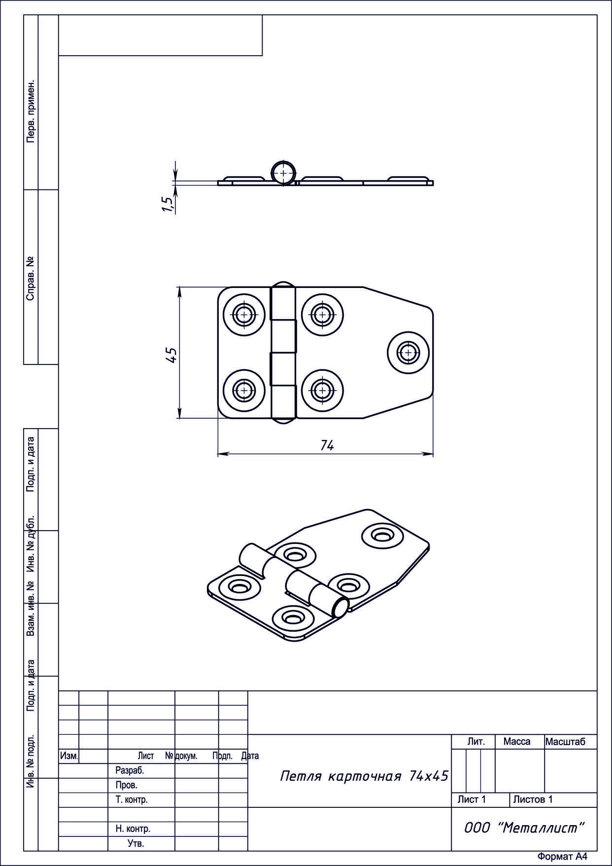 Петля карточная 74*45 усиленная цинк г.Кунгур (150)