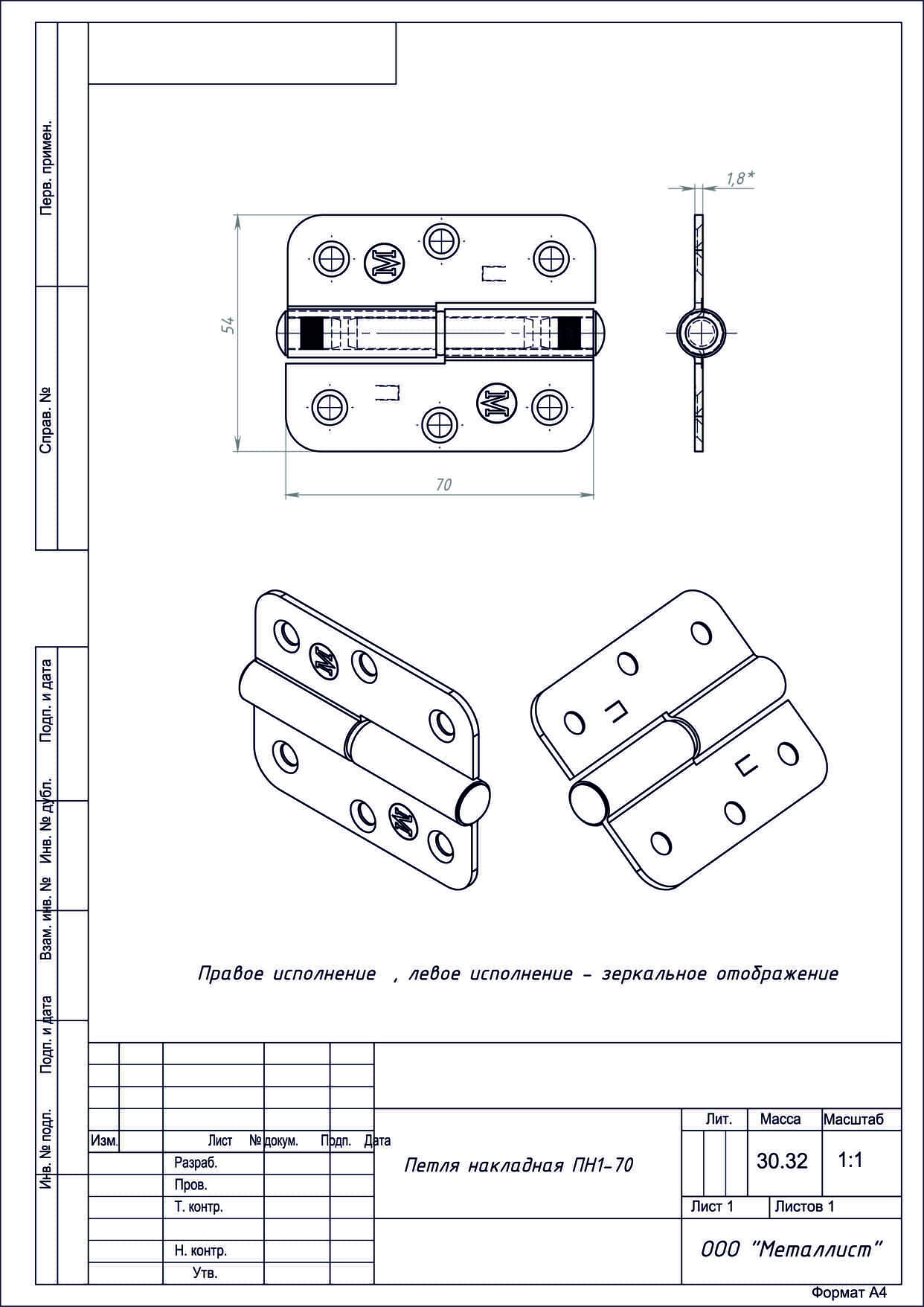 Петля накладная ПН 1-70 цинк левая г.Кунгур (120)