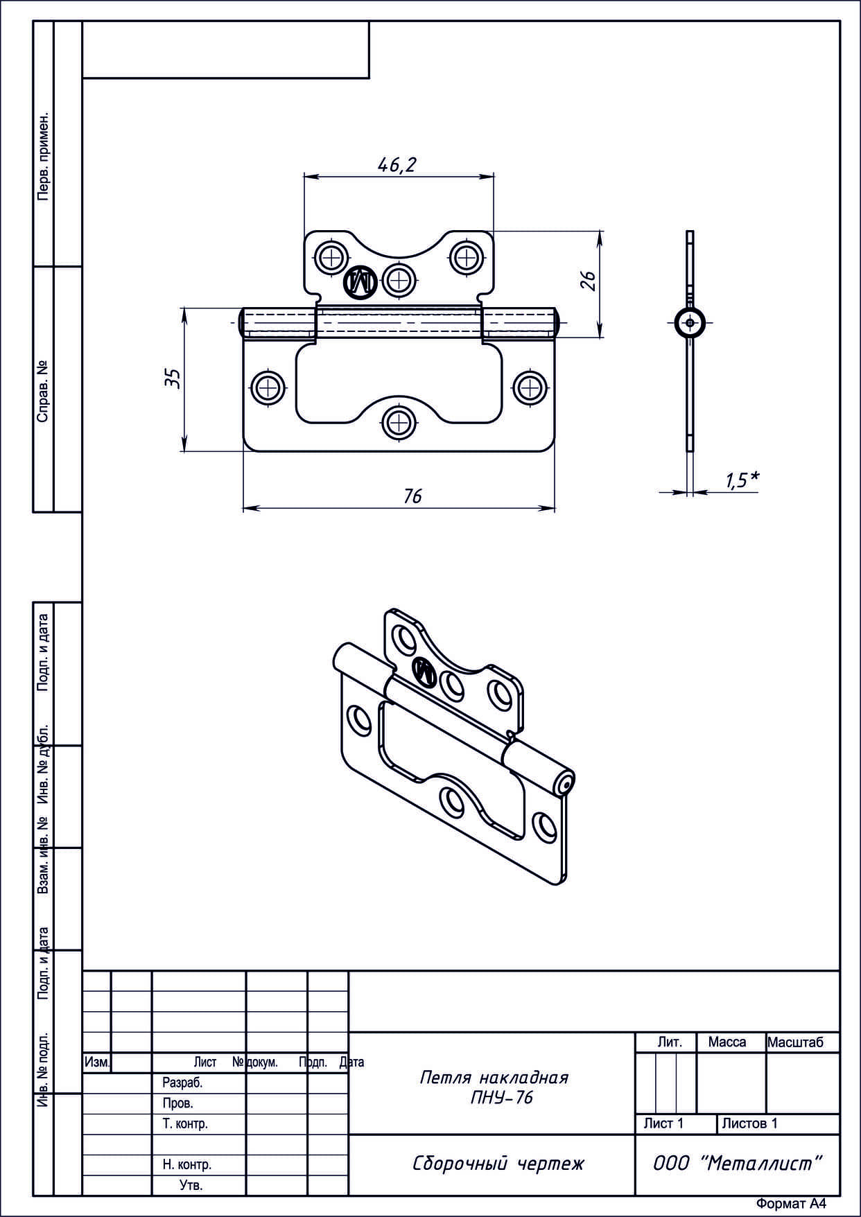 Петля накладная ПНУ-76 (без врезки) цинк г.Кунгур (200)