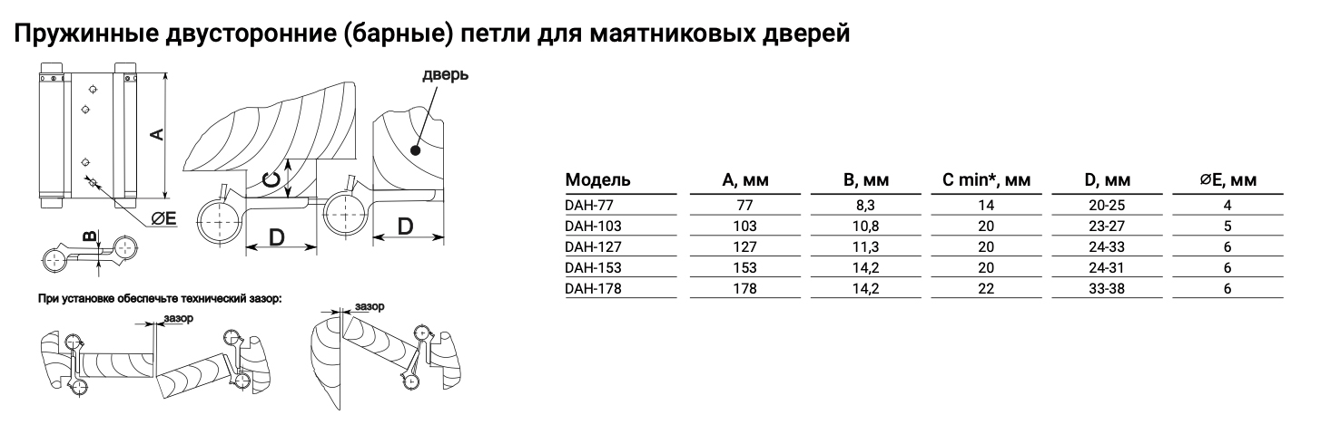 Петля пружинная двусторонняя NOTEDO DAH-153-SS Satin