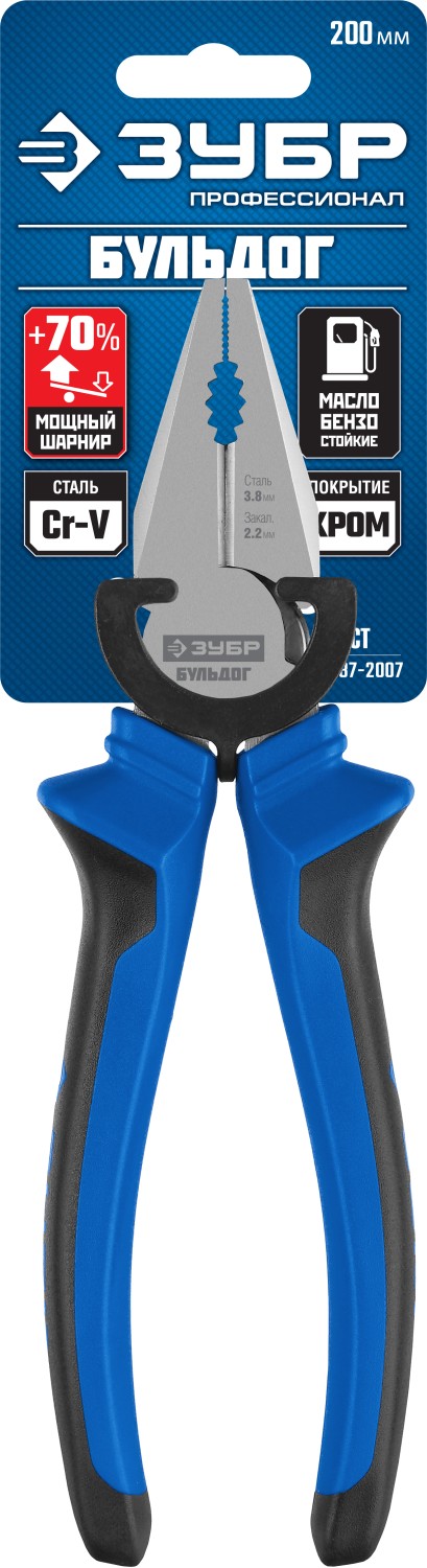 Плоскогубцы 200мм комбинированные МБС ручка "ЗУБР Бульдог"