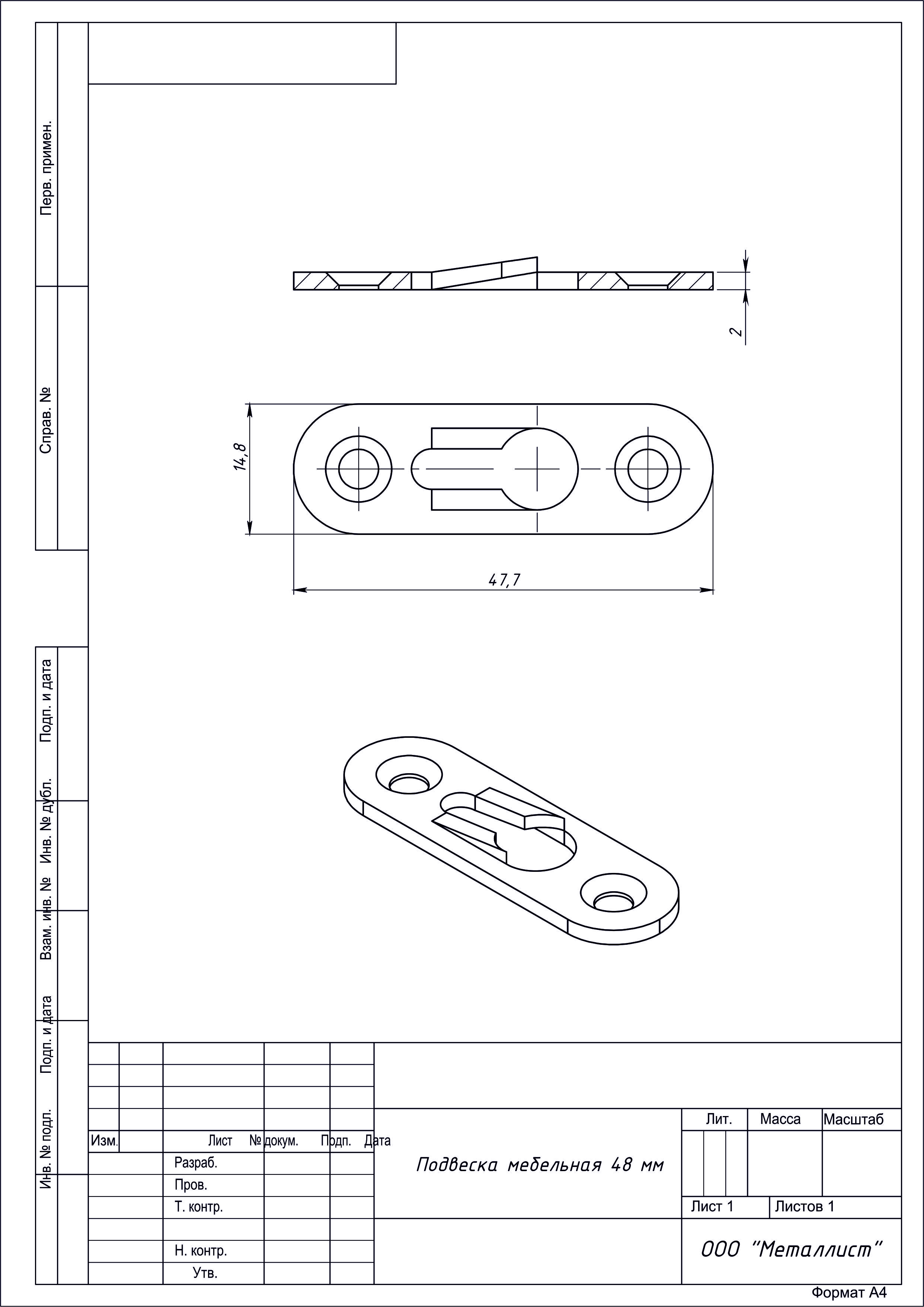 Подвеска мебельная L-48 цинк МАЛАЯ г.Кунгур (1000)