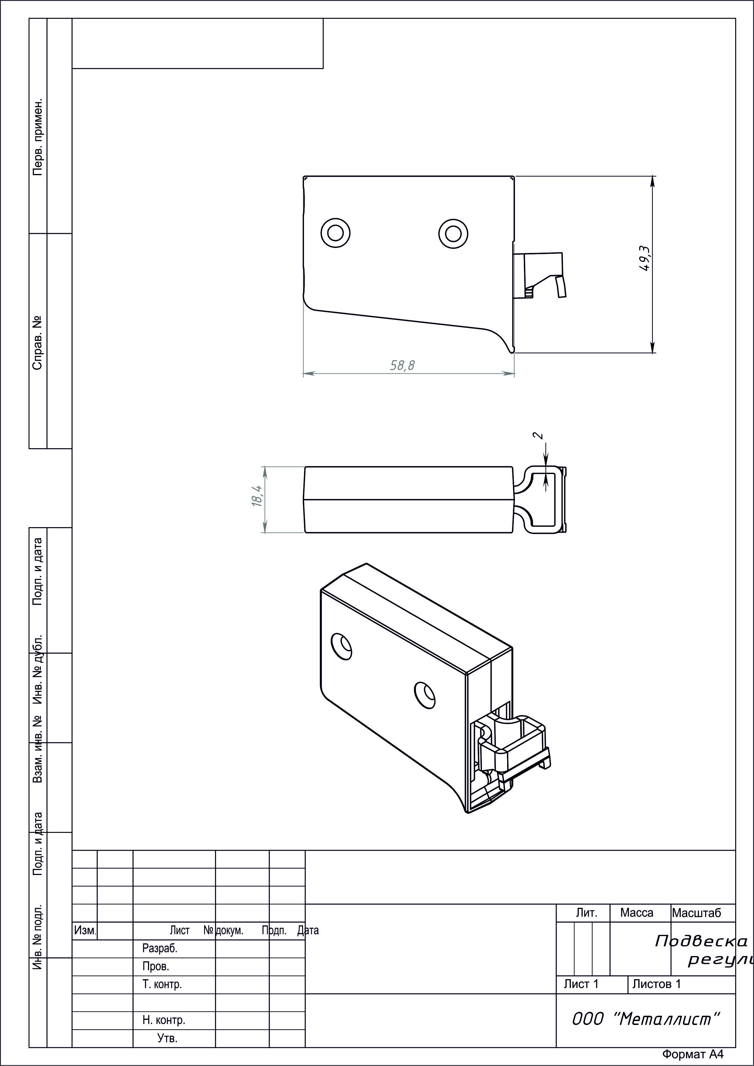 Подвеска мебельная регулируемая белая г.Кунгур (100)