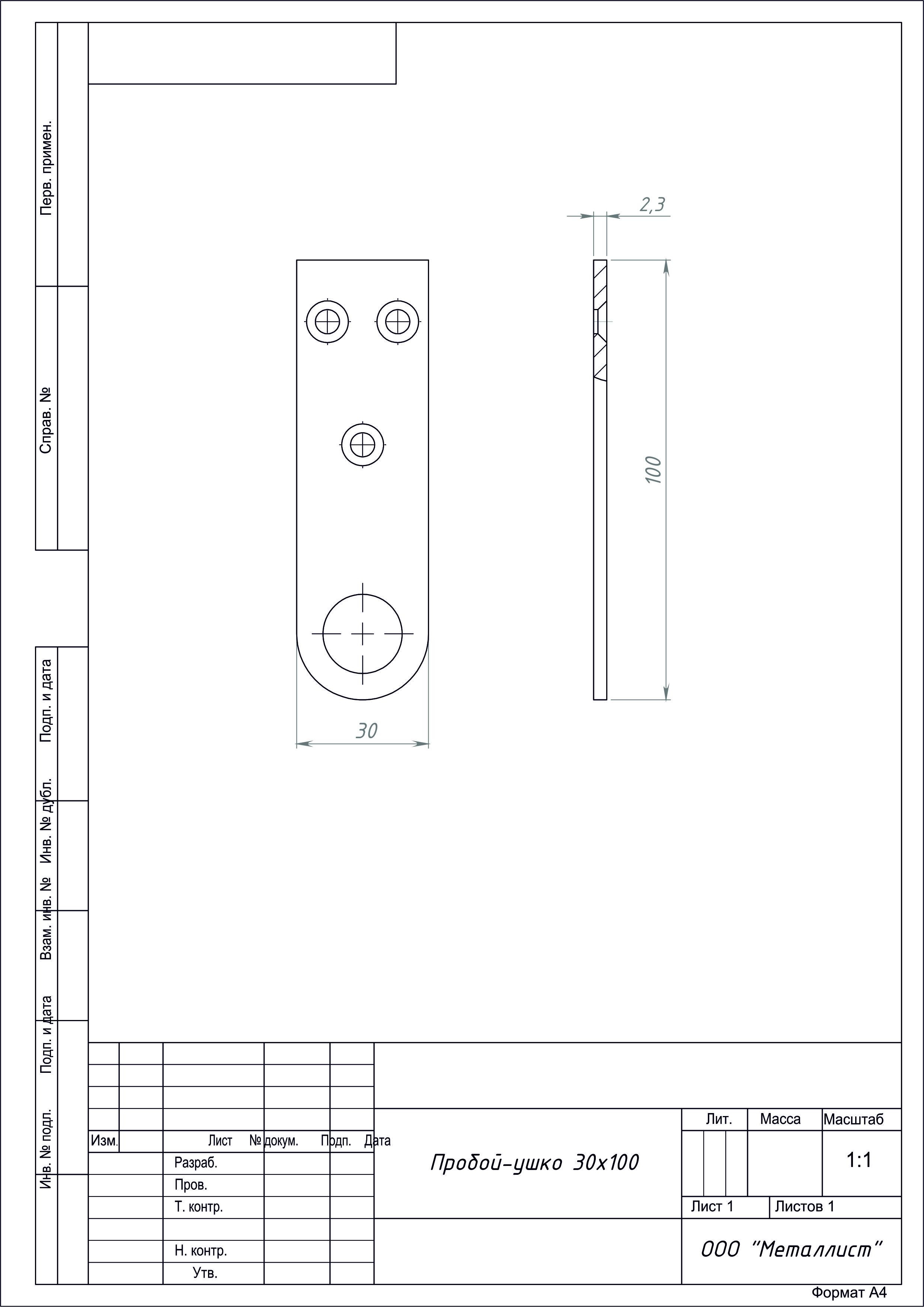 Проушина прямая 30*100 цинк г.Кунгур (100)