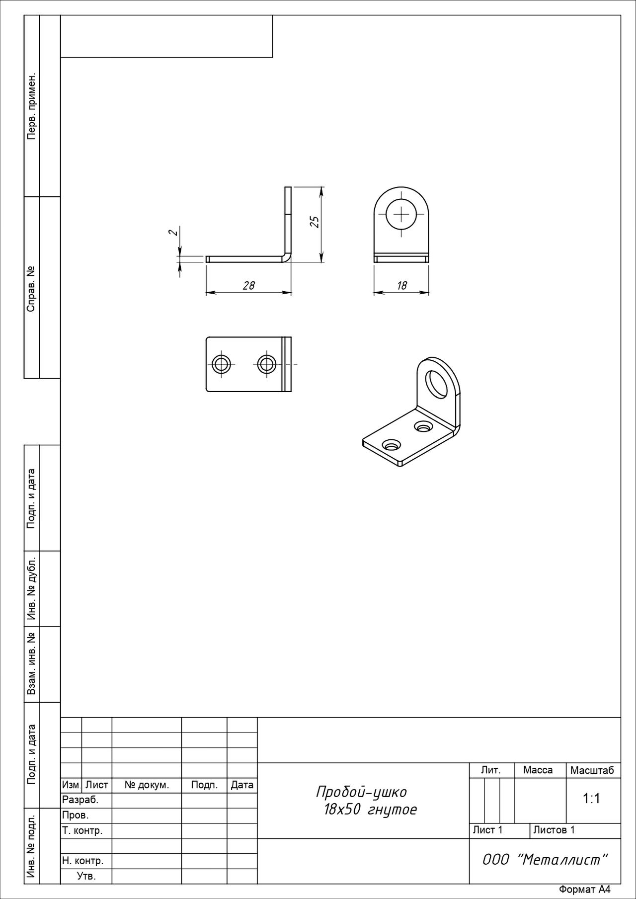 Проушина угловая 18*50 цинк г.Кунгур (500)