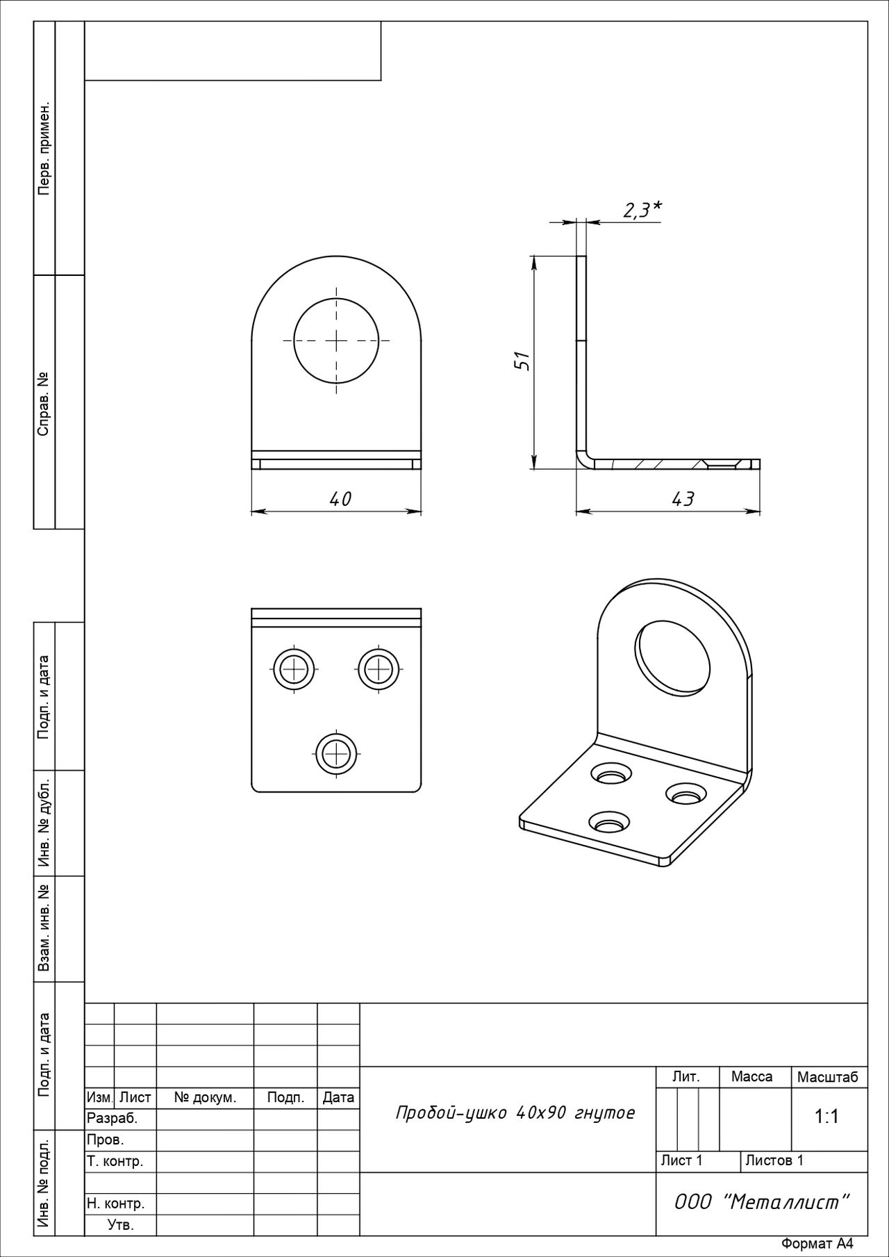 Проушина угловая 40*90 цинк г.Кунгур (100)