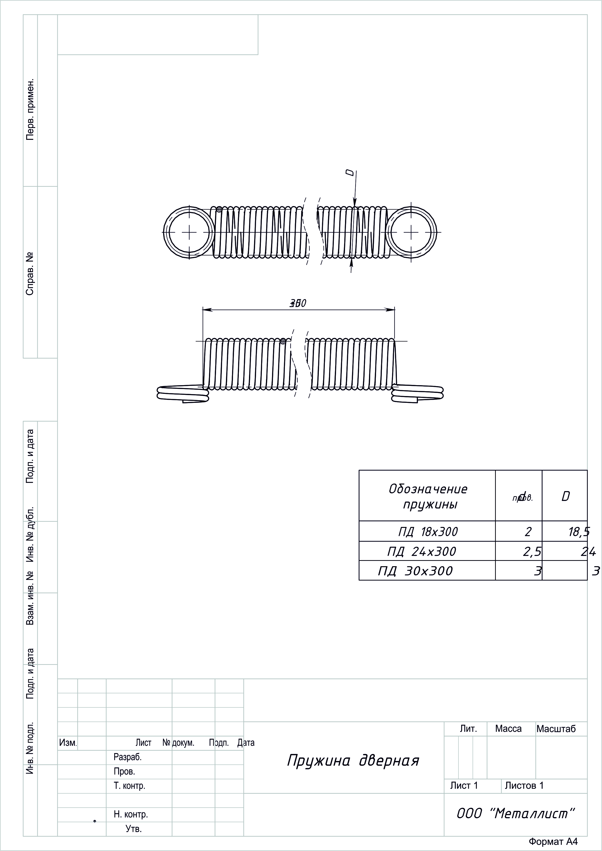 Пружина дверная 18,5мм цинк (тонкая) г.Кунгур (50)