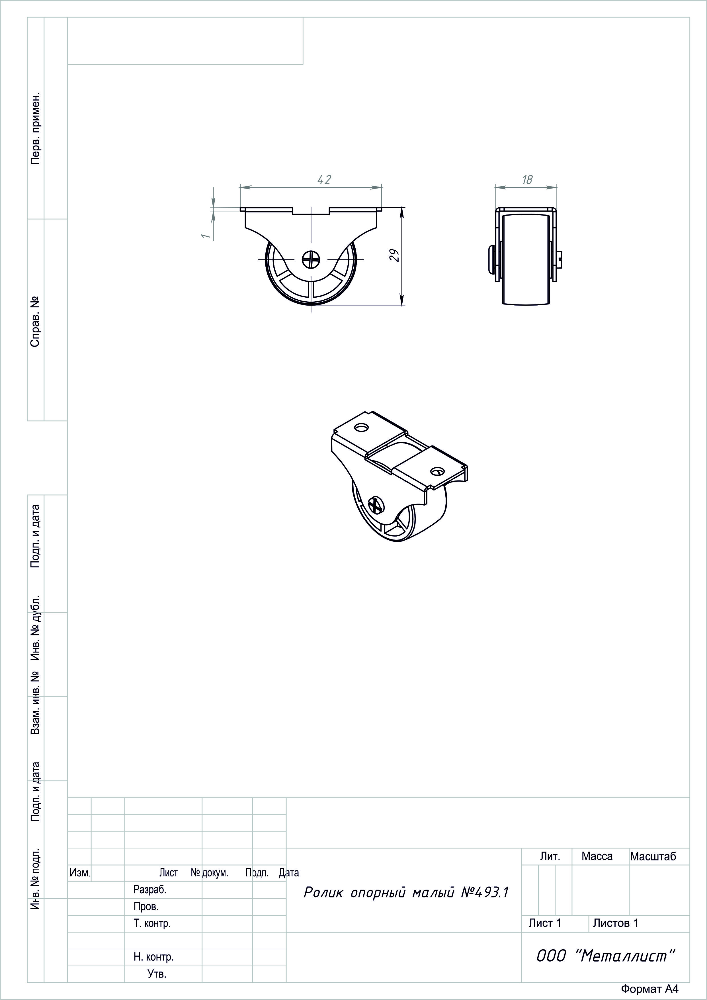 Ролик опорный малый 493 цинк г.Кунгур (250)