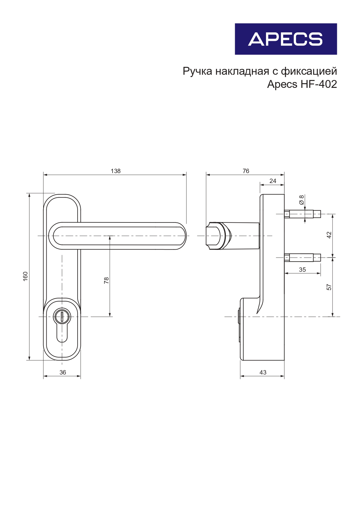 Ручка накладная с фиксацией Apecs HF-402-SL