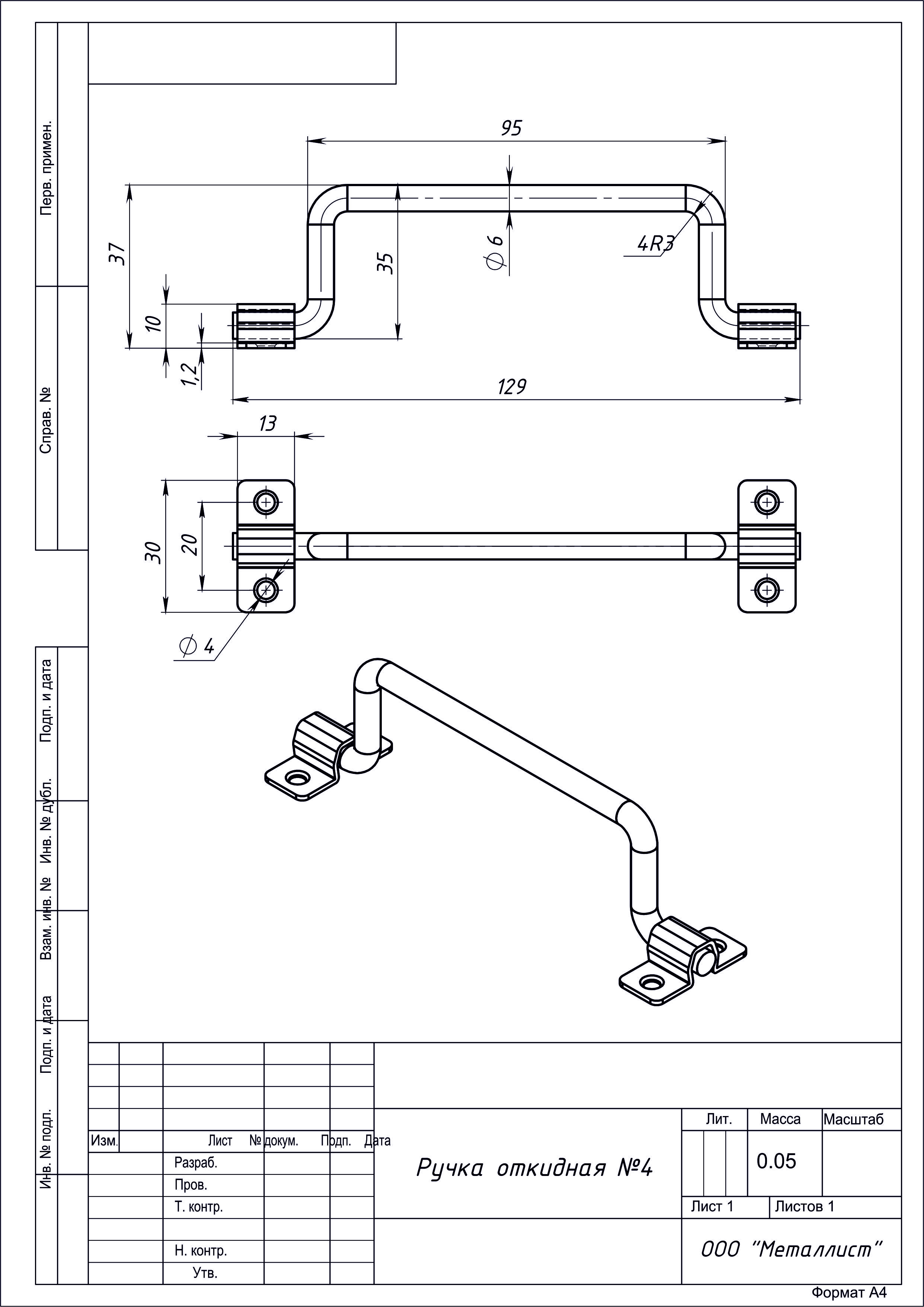 Ручка откидная №4 цинк г.Кунгур (50)