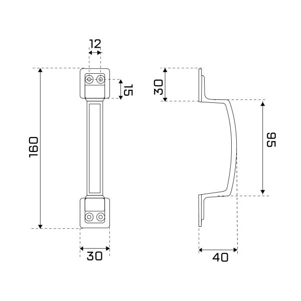 Ручка-скоба дверная. Материал - алюминиевый сплав, гальваническое покрытие. Расстояние между креплениями - 135 мм, общая длина ручки - 160 мм, высота - 40 мм. В комплекте 4 крепежных шурупа. Упаковка - европакет. Гарантийный срок эксплуатации — 1 год.